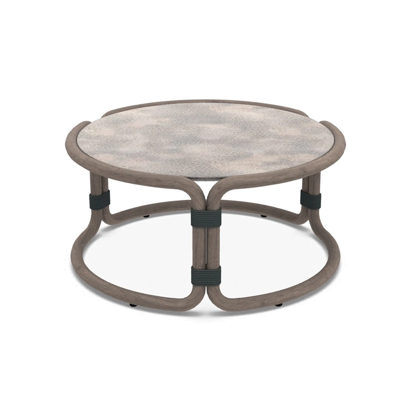 Comprising sofa, lounge armchair, coffee table and pouf with structure in pickled teak, Rotin is inspired by Asian tradition, which sees bamboo as the main element for outdoor furnishings together with techniques normally used in the production of rattan furniture.