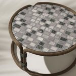 - Table top available in Statuary Marble, Cipollino Marble, Mosaic Marble, or Enameled Lava Stone in London Smoke color.
