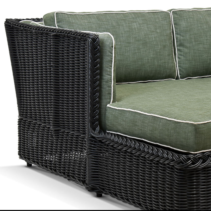 - Internal frame designed in a durable powder coated aluminum and wrapped in an all-weather outdoor wicker.