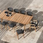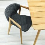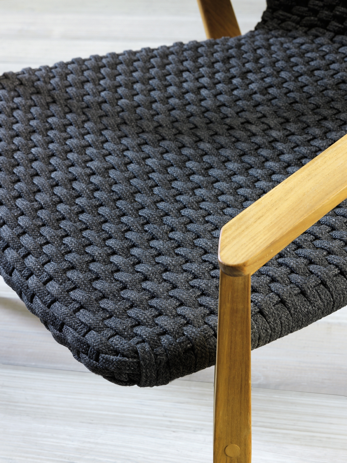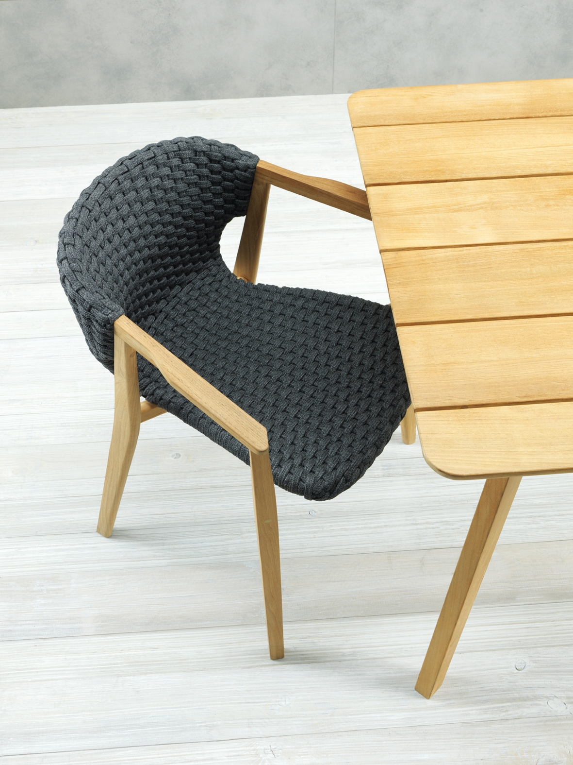 Knit is a complete line of tables, chairs and lounge chairs in teak and woven rope that expresses with refinement a perfect synthesis of aesthetics, functionality and ergonomics. This iconic collection is offering a new and special interpretation of the classic bergère.