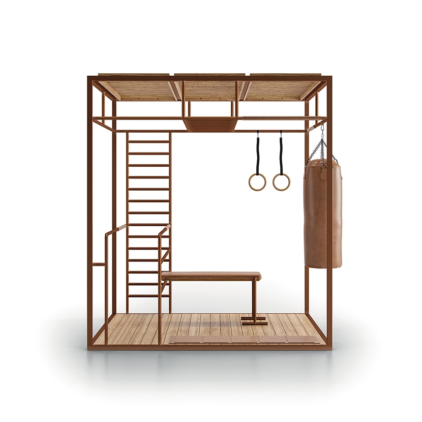 OUT-FIT is the project that sees Ethimo create an unusual way of outdoor living and connecting with the landscape, extending the concept of comfort to an element that strives towards equilibrium between physical fitness and general wellbeing. This new structure has, in fact, been designed for keeping fit surrounded by nature, promoting an active outdoor lifestyle that is the perfect balance of design and function, comfort and sport, with safety a important feature.