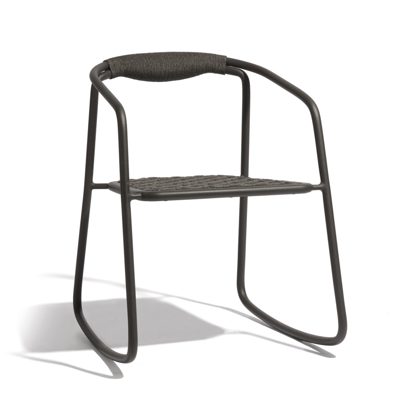 In their durable yet airy design, the Duo chair and rocking chair radiate purity. Marked by the duality of traditional craftsmanship and meticulous aluminum work, both chairs are beacons of transparency. Duo is composed of two connected frames made of bent aluminum, giving the impression of being held together by ropes. The Duo rocking chair is the winner of the 2018 Archiproducts Design Award in the ‘Outdoor’ category.