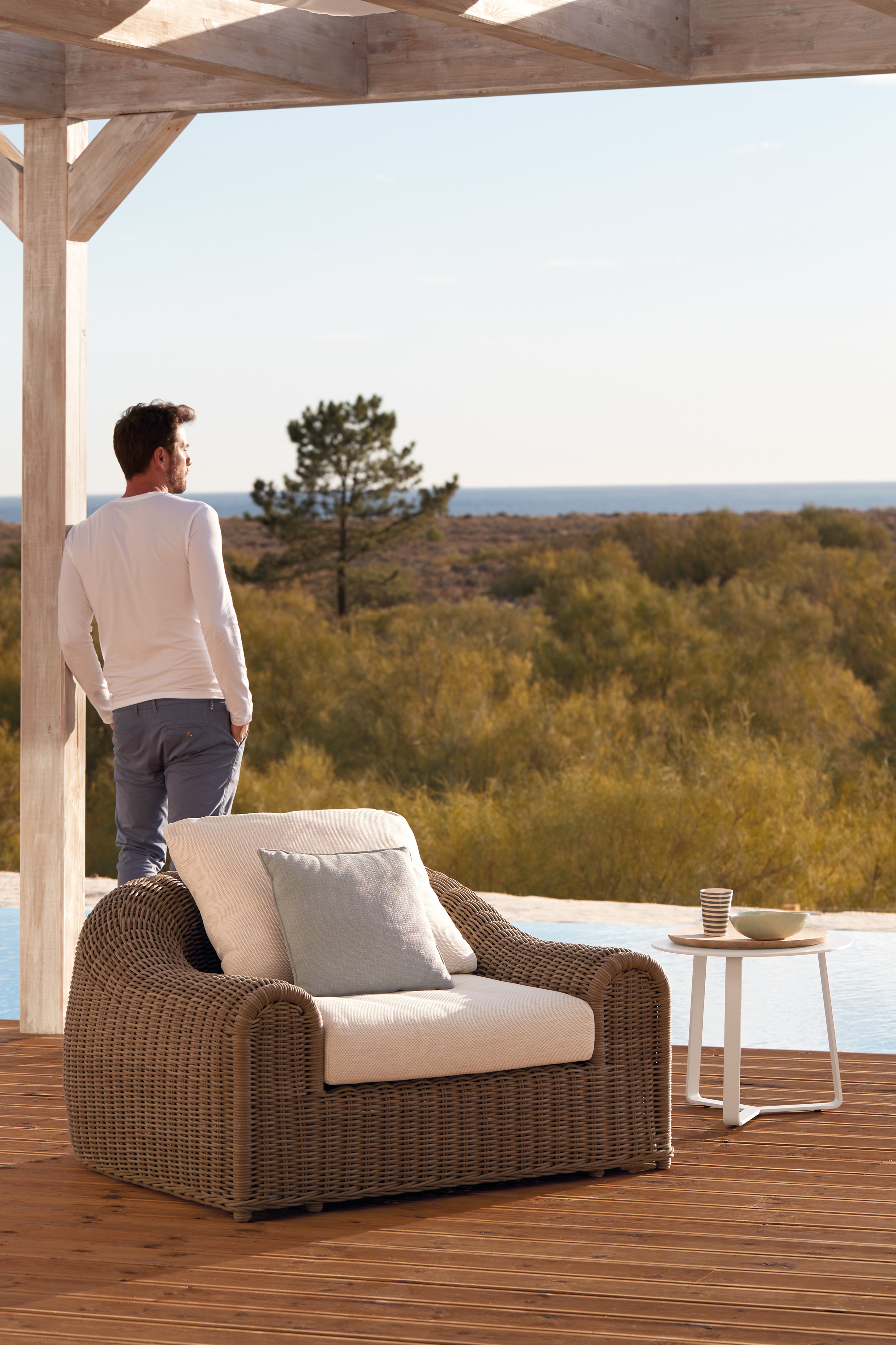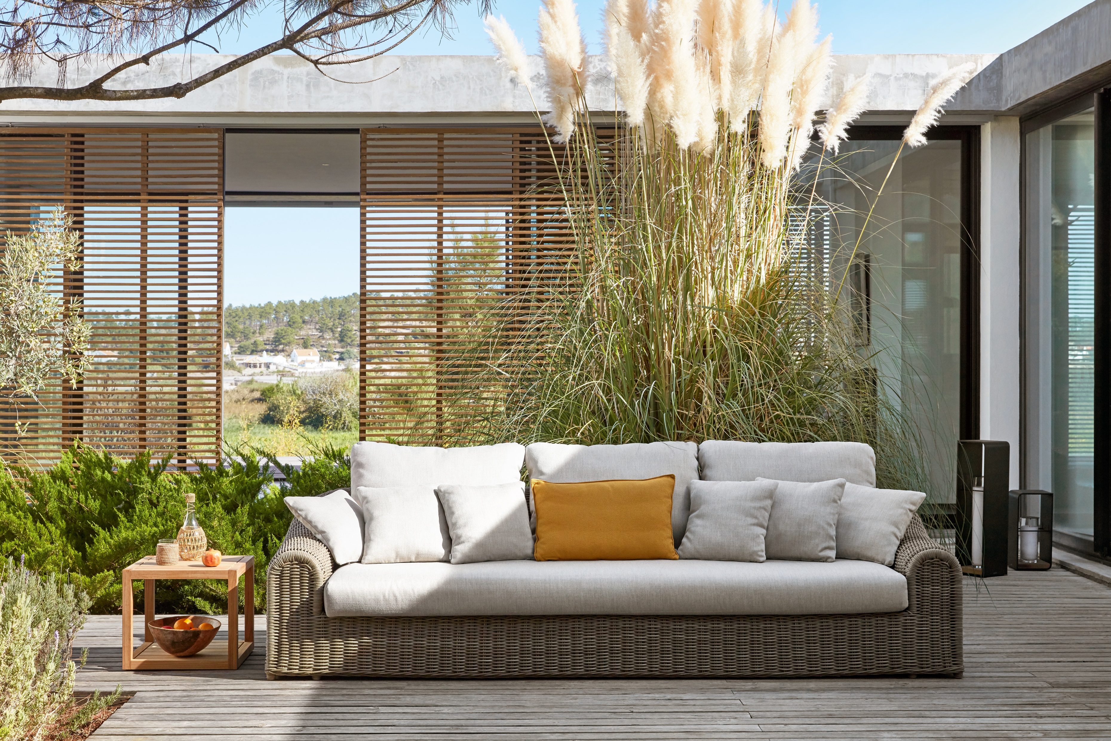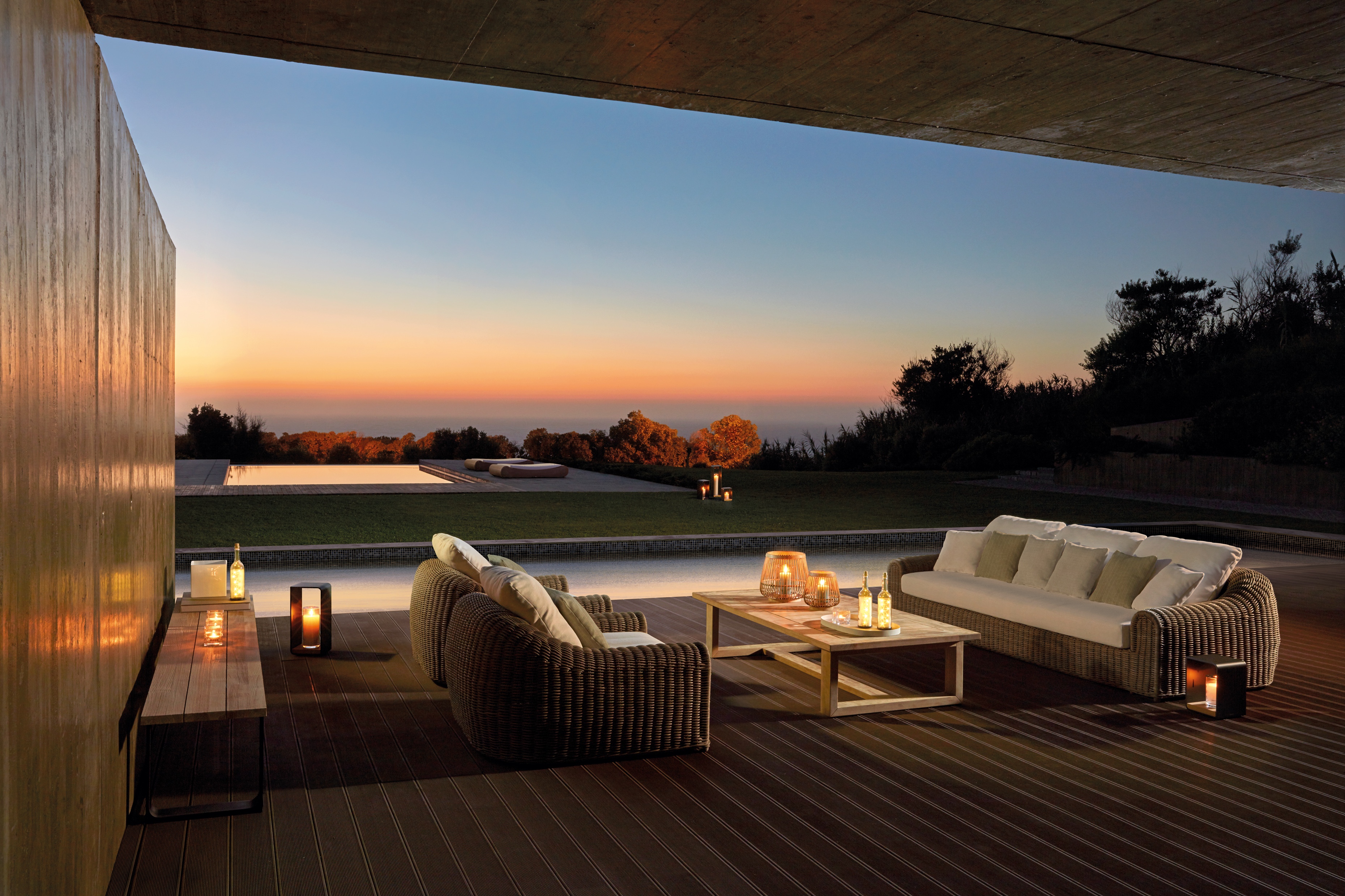 The River seating collection owes its name and inspiration to the meandering flow of a watercourse. Through its elegant curves and shapes, the sofas and sunbeds mimic natural surroundings, fostering a harmonious, relaxing space for connection. Become one with nature and experience its calming effects in this low-to-the-ground design with extra deep seating.