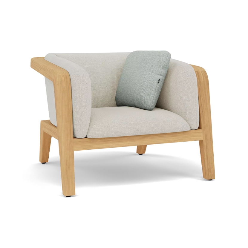 Clean lines and strong curves give Sunrise an undeniably compelling posture, while the warmth of its materials and openness of its frame form an irresistible invitation for endless moments of outdoor enjoyment. Available in warm brushed teak and bold teak scuro, Sunrise includes a complete range of both lounge and dining furniture. Dark teak details and a backrest upholstered in fabric or batyline® complete the design of this robust yet elegant teak collection by Matthew Townsend. From countryside residence to avant-garde hotel or even a futuristic yacht, Sunrise’s versatility makes it a captivating addition to any environment.