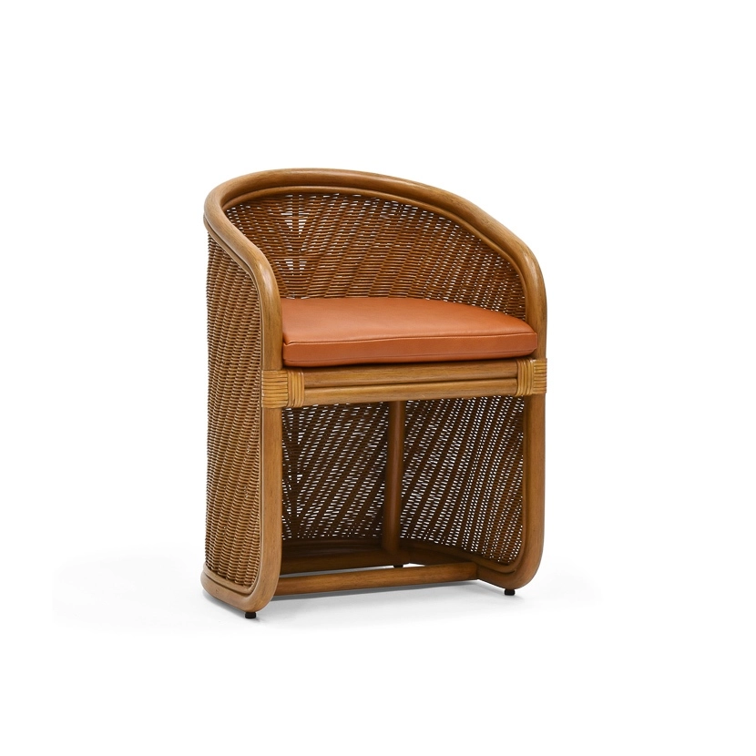 Every chair features handwoven rattan with subtle variations that make it truly unique. The honey-brown tones enhance its organic charm. Cushioned seats and tailored pillows provide comfort while keeping the look refined.