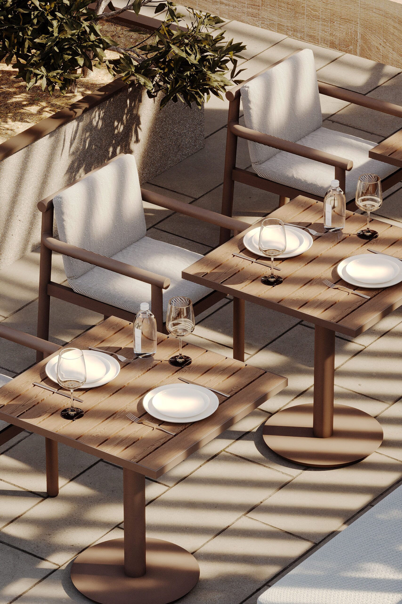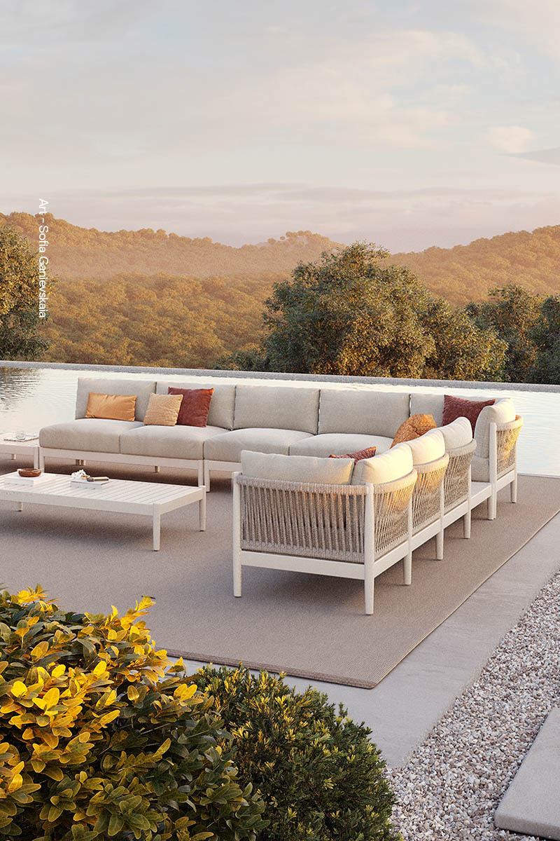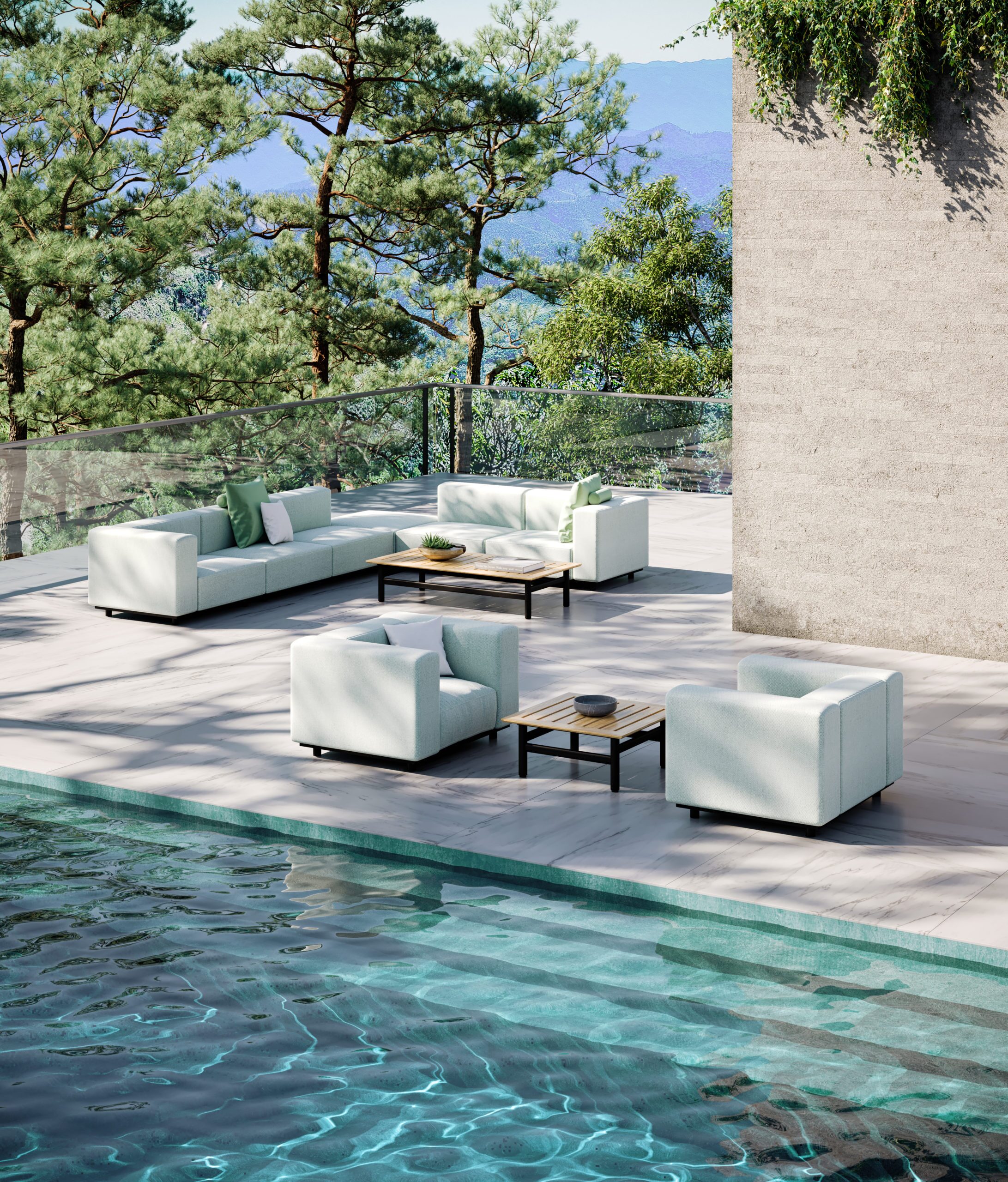 Showcasing a mastery of aluminum, teak, rope, and all-weather woven materials that have been chosen for strength and longevity in demanding outdoor environments, each design demonstrates clean, architectural lines and thoughtful proportions that complement contemporary spaces.
