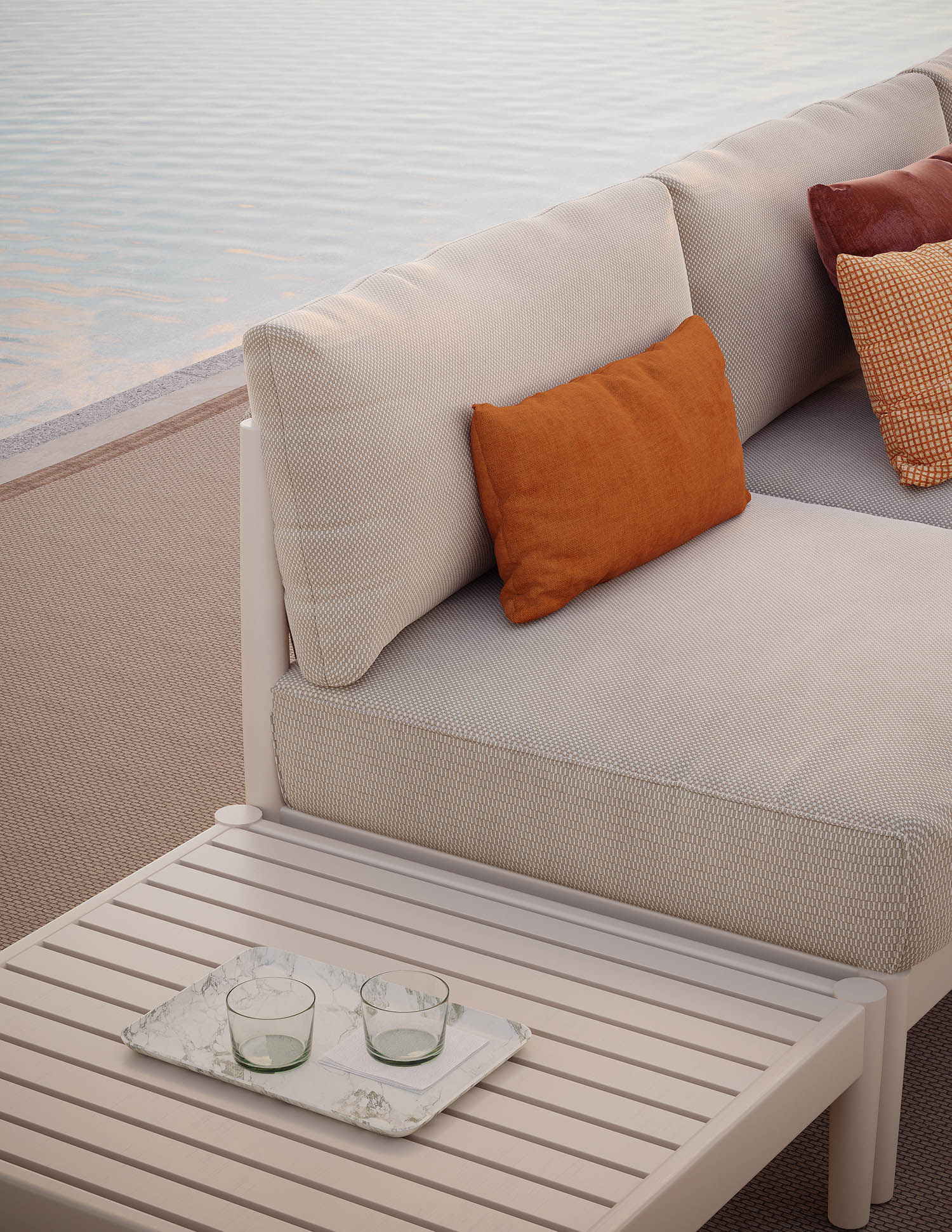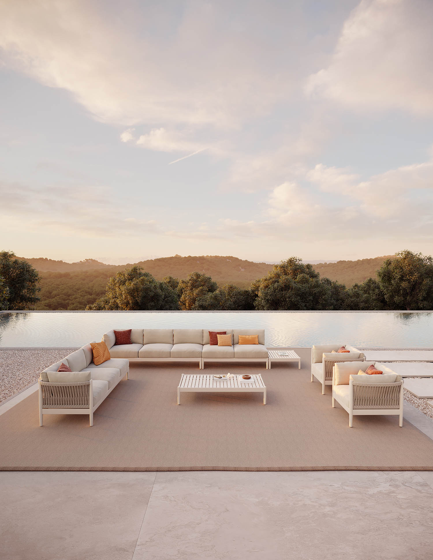 With remarkable comfort and elegant styling, the Georgica lounge collection invites you to sink in. Constructed from solid teak wood, subtle curves complement contrasting woven rope panels. Georgica is offered as a sectional sofa allowing a variety of planning configurations.