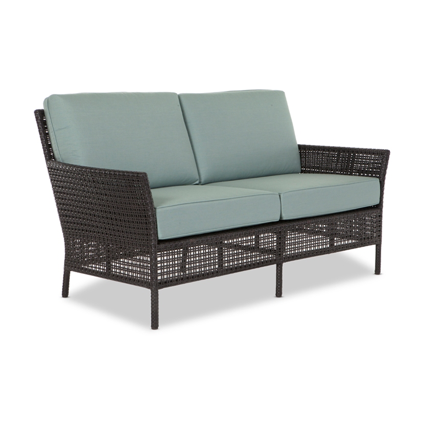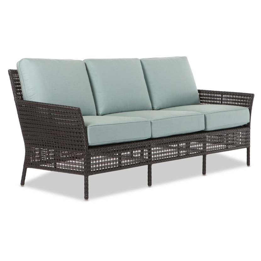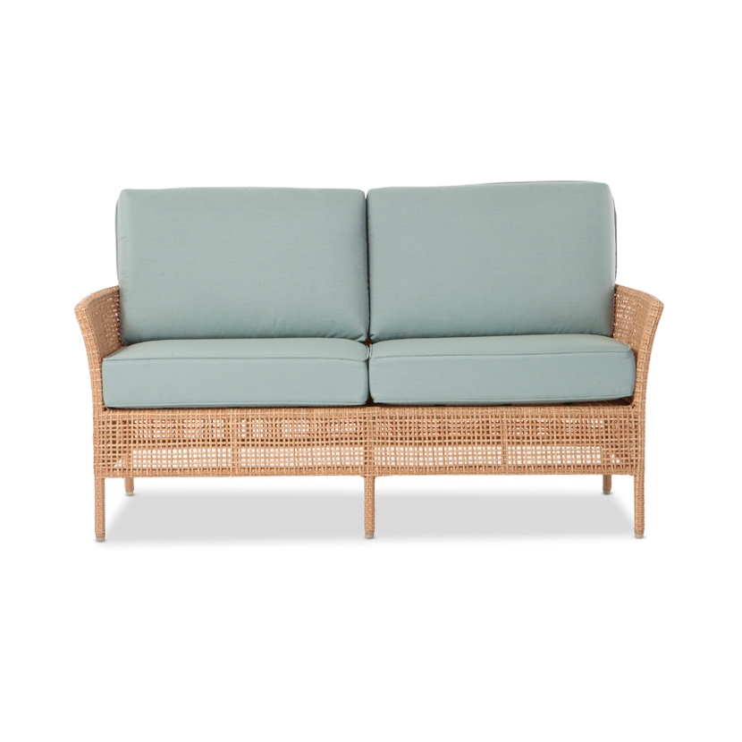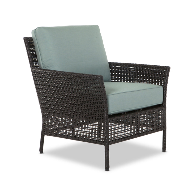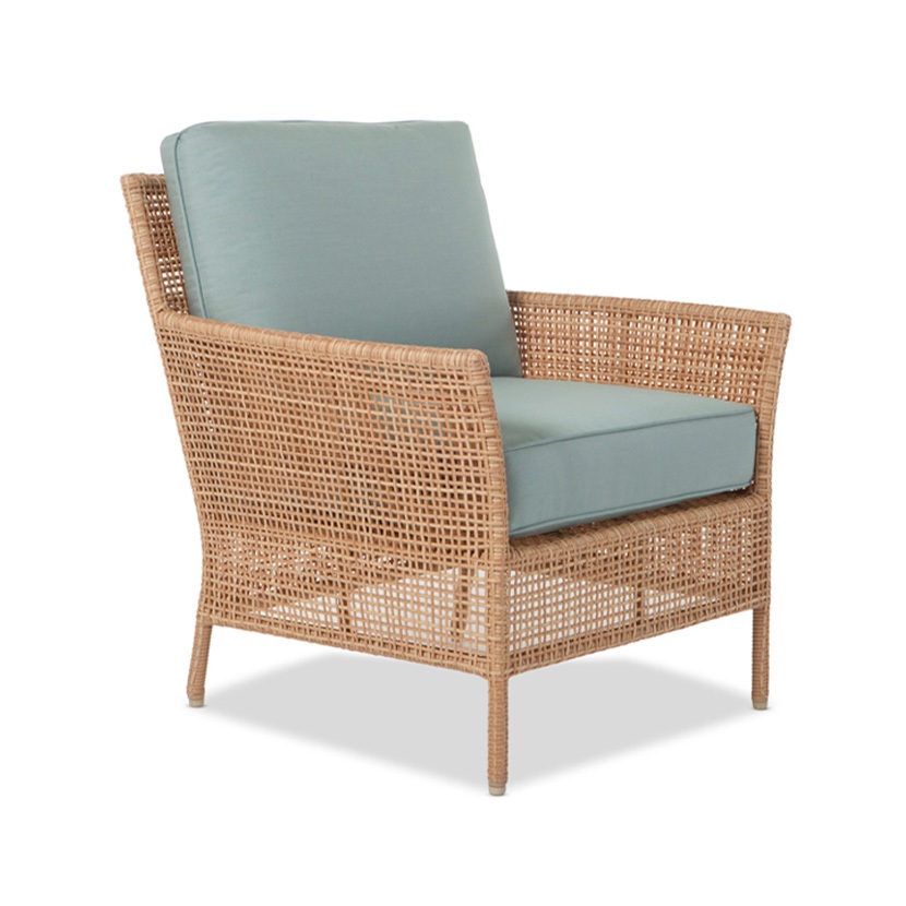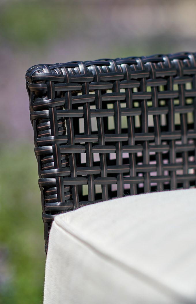 Its seat cushions are available in all Giati Elements, Sunbrella fabrics or COM. Frame is available in Walters Outdoors Standard Aluminum and Resin Weave offering.