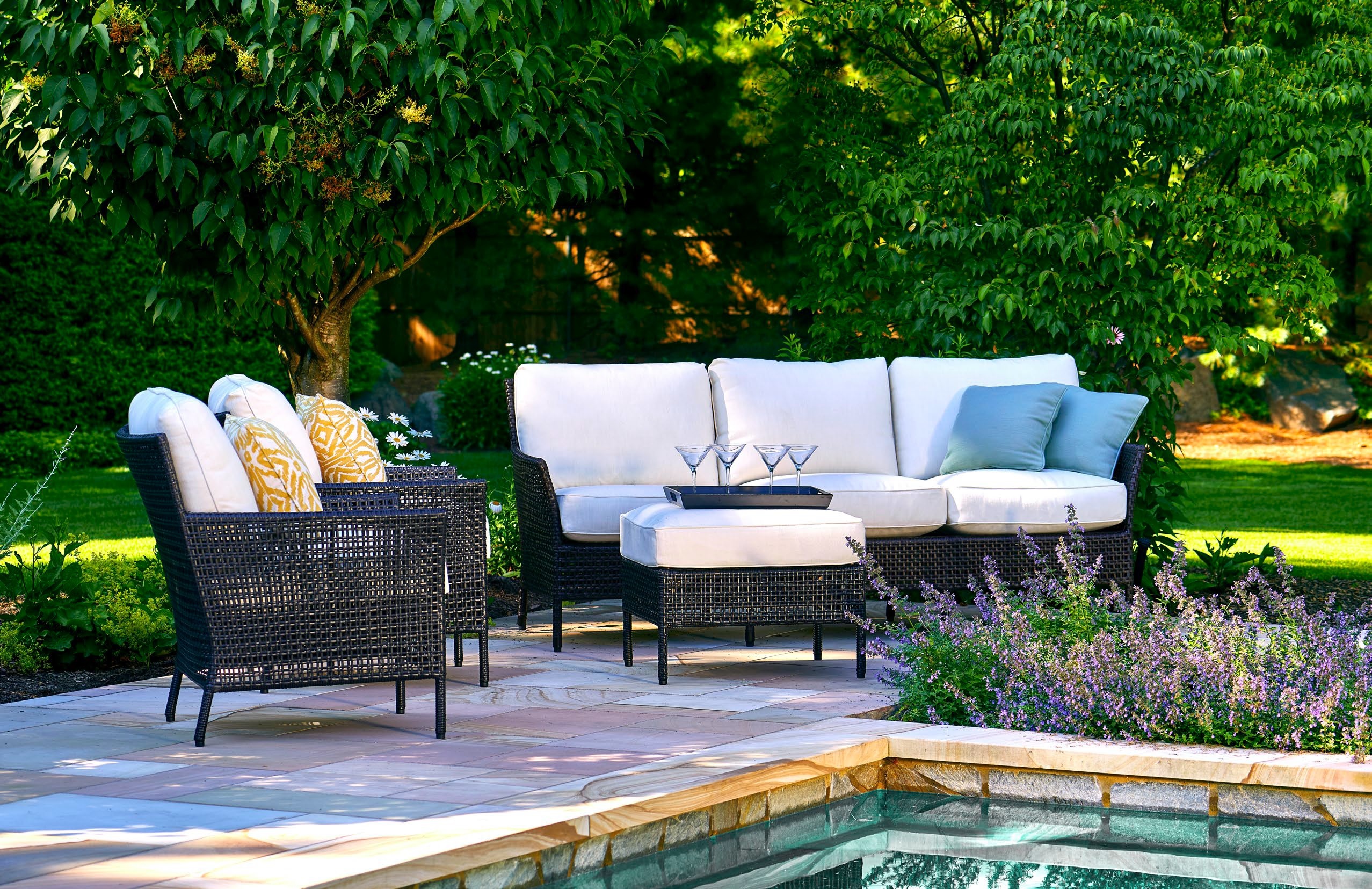 Whether it’s placed poolside or on the patio, you’re sure to love this-piece collection! It’s water-resistant, standing up to rainstorms and splashes from impromptu cannonballs.