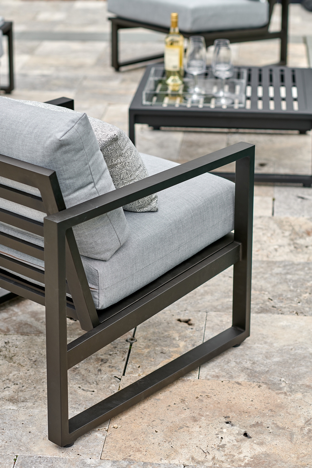 Enhance your outdoor space with the luxurious comfort and modern styling provided by the sleek lines and deep cushions of this exceptionally durable and visually appealing collection.