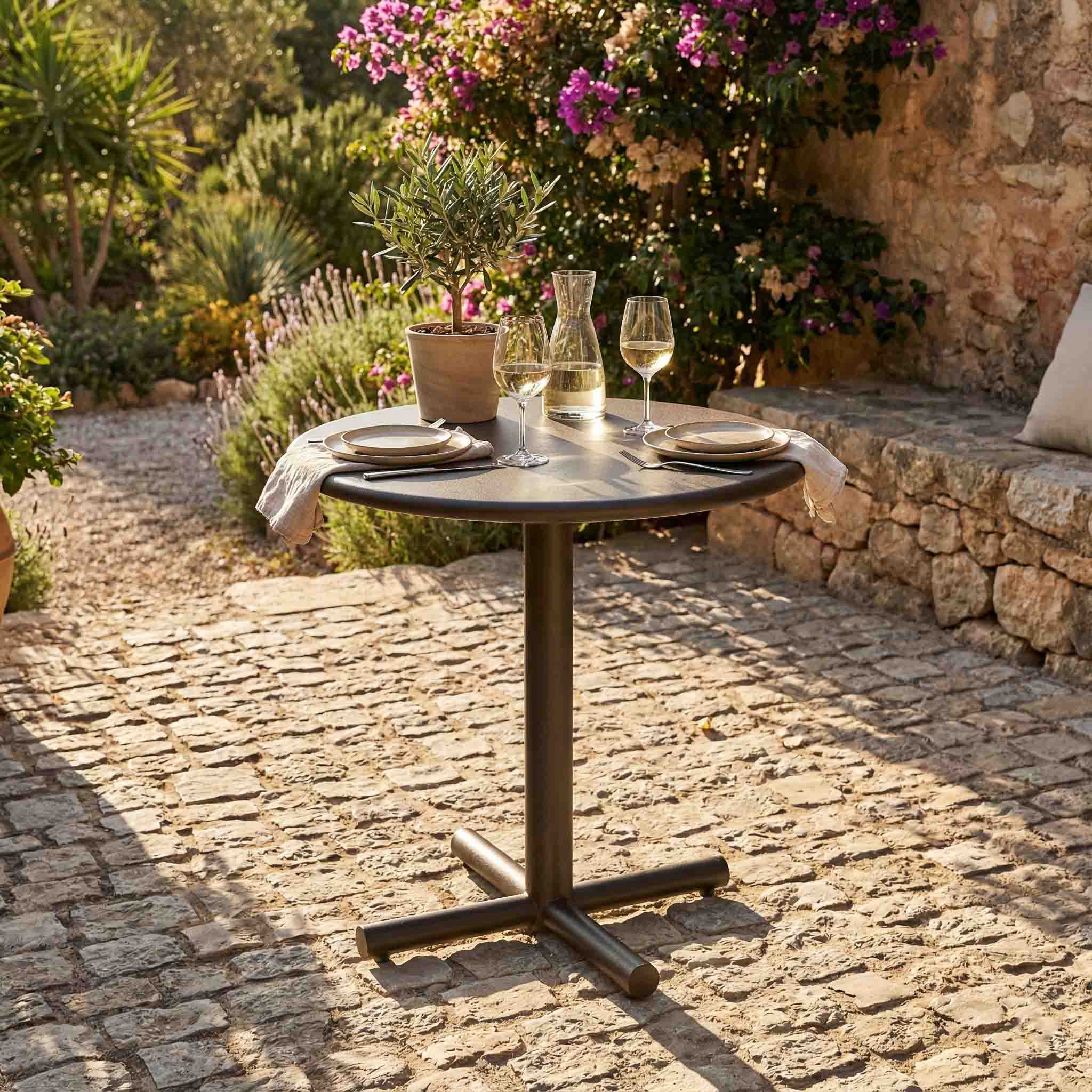 These pedestal tables elevate outdoor spaces by combining stability with refined design.
