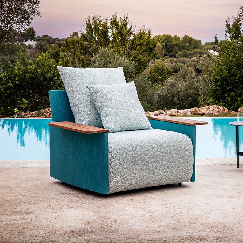 - The structure of the backrest and armrest is in Poleasy upholstered in water repellent herringbone fabric in two colors or plain colored in one color.
