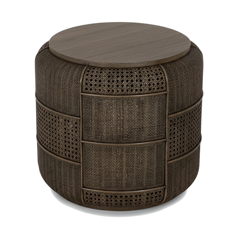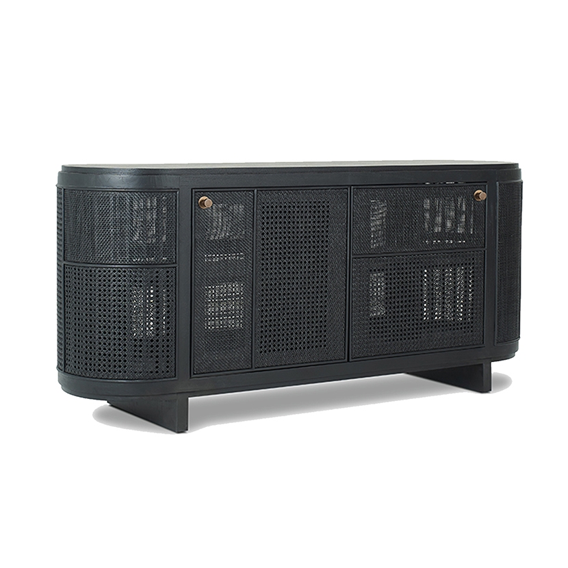 - Mahogany wood surfaces with accents in hand-woven rattan to add texture and visual interest