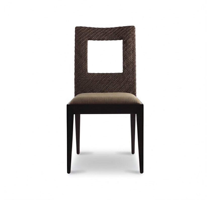 - Mahogany wood frame with backrest in hand-woven natural rope to add texture and visual interest