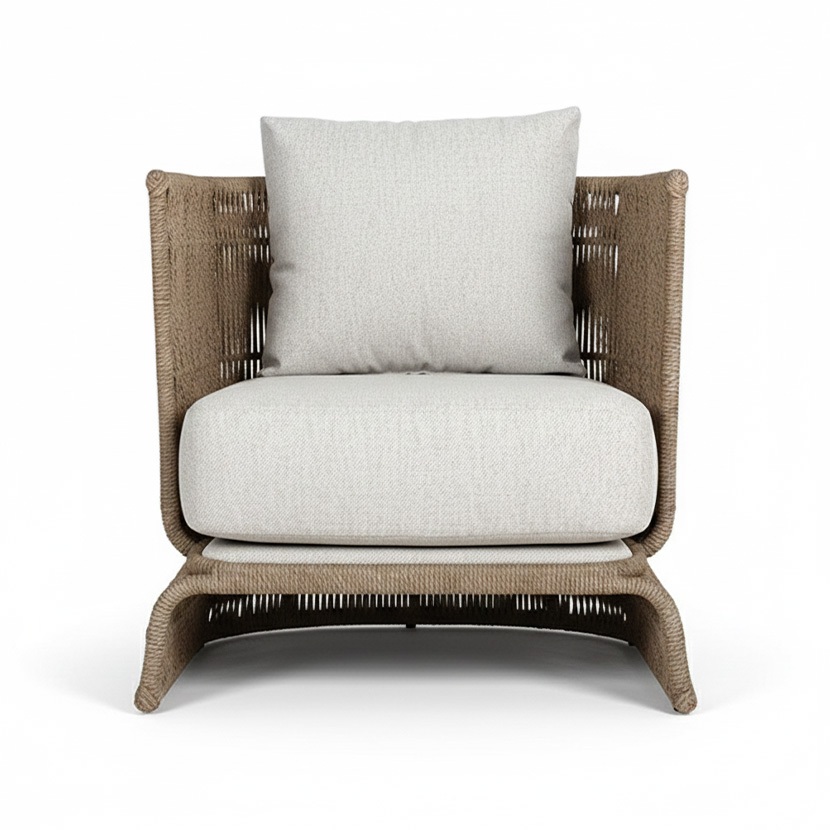 - Frame covered in hand-woven, natural rope to create texture and visual interest
