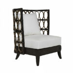 - Mahogany wood surfaces with accents in hand-woven rattan to add texture and visual interest
