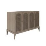 - Mahogany wood surfaces with accents in hand-woven rattan to add texture and visual interest