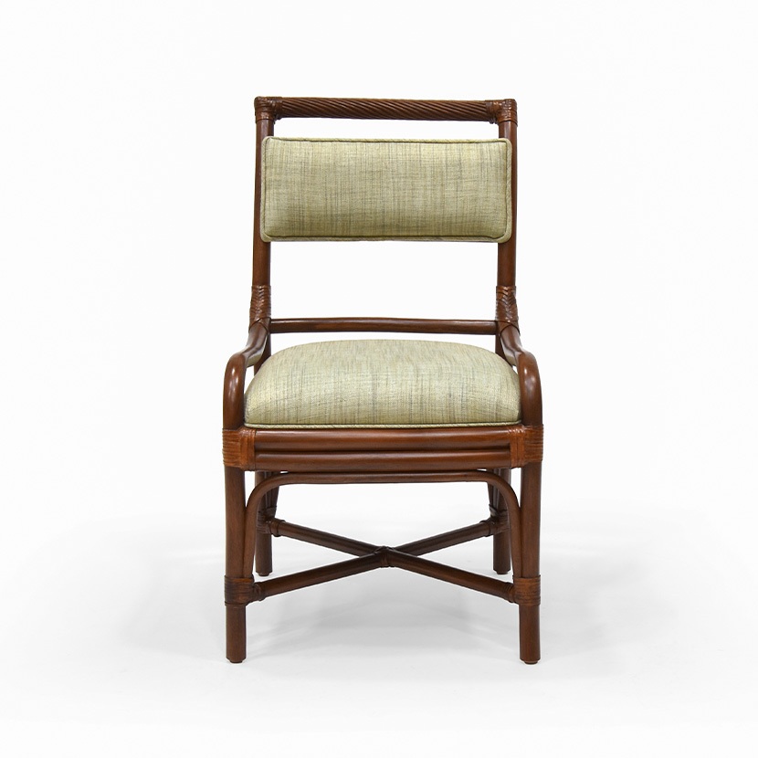 - Mahogany wood frame with backrest in hand-woven natural rattan to add texture and visual interest