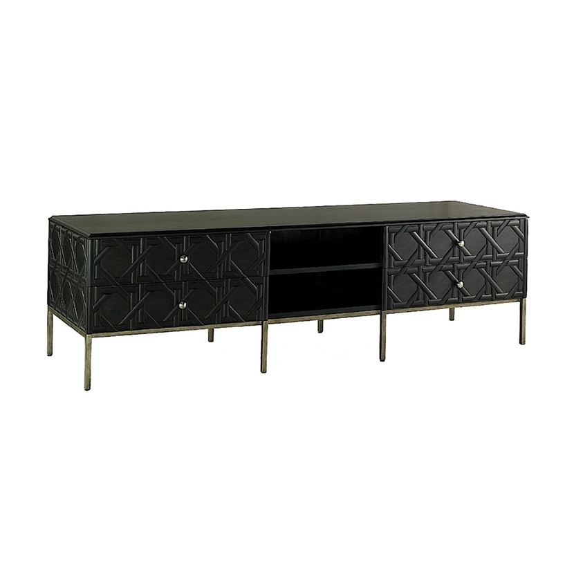 - Mahogany wood body with accents in natural rattan, on metal base frame