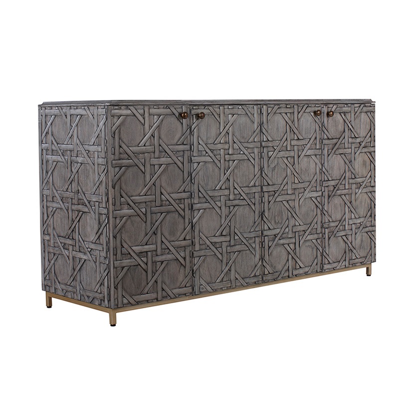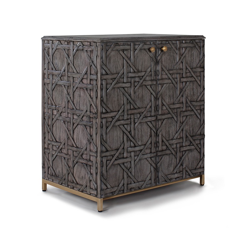 - Mahogany wood body with accents in natural rattan, on metal base frame