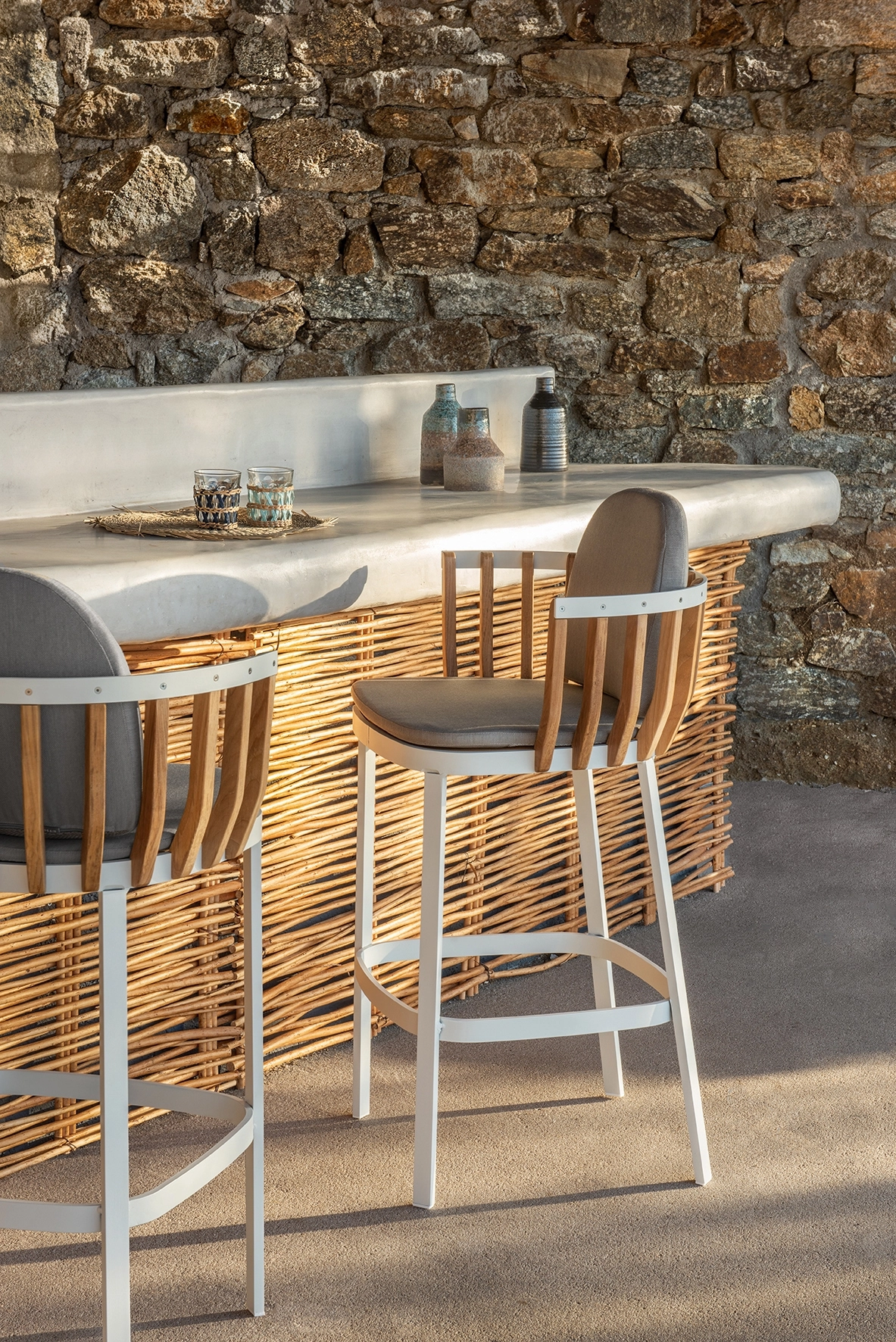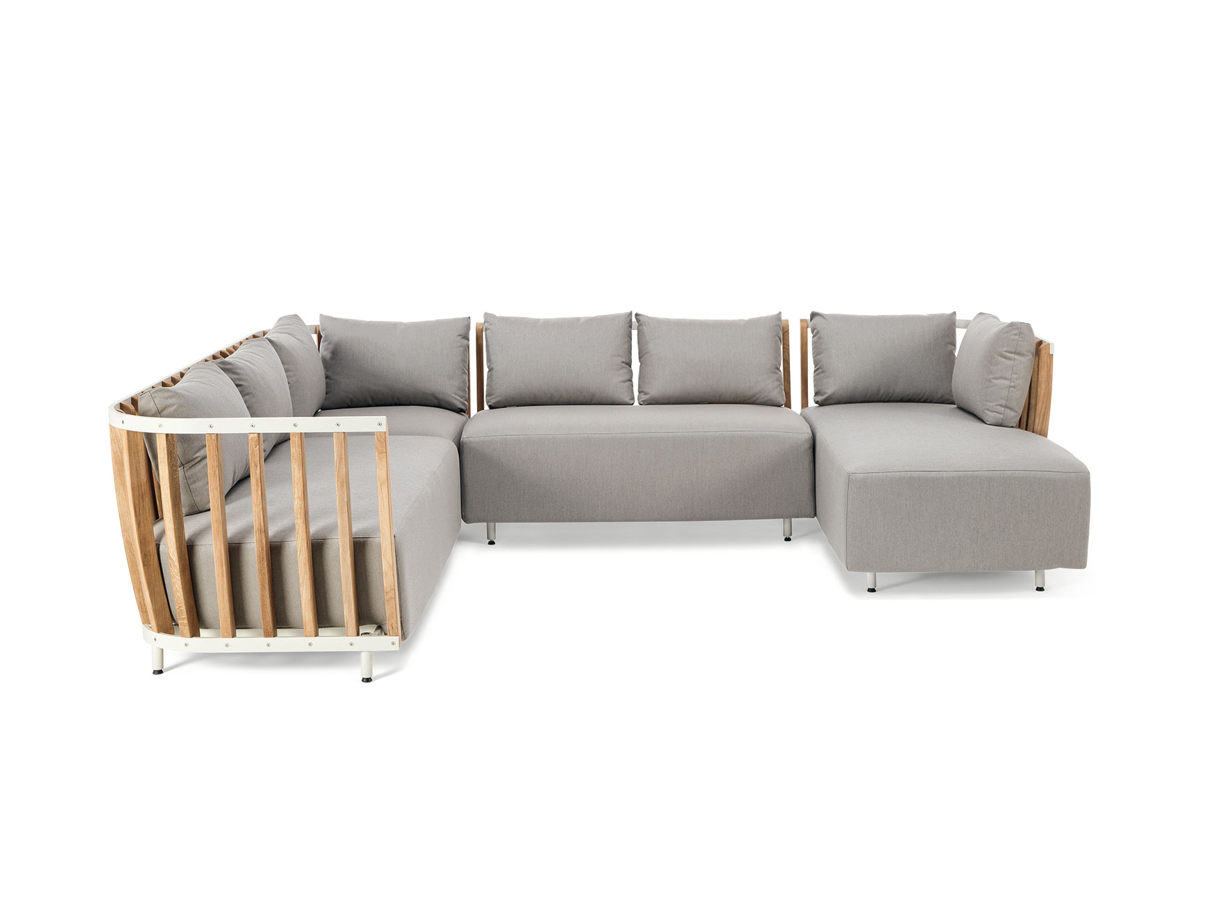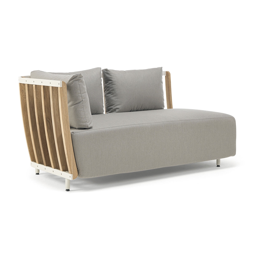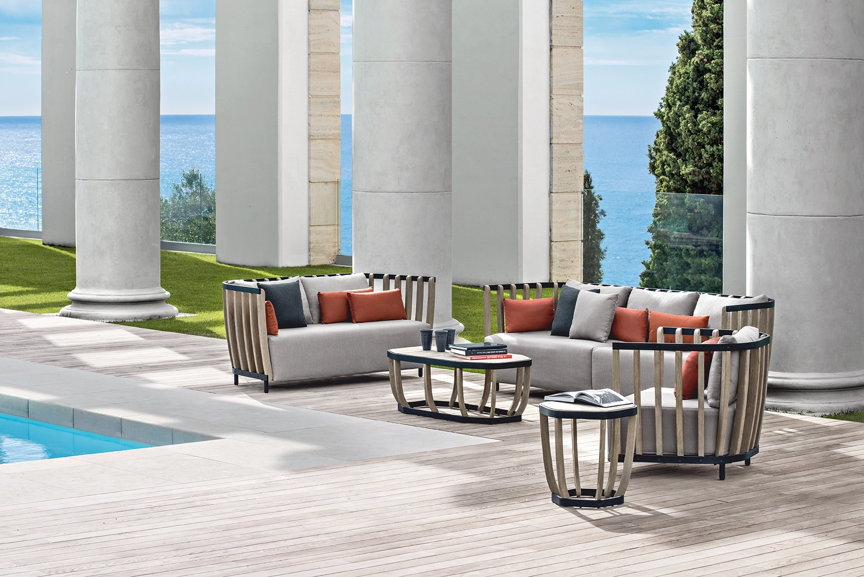 The collaboration between Ethimo and Patrick Norguet has given rise to Swing, a collection of lounge furniture with a dual structure: one an external metal layer, the other an internal layer made with slats of teak, the combination of which creates a balanced alternation of lines and materials. The collection, now an icon of outdoor living, is made up various pieces of lounge and dining furniture that make it possible to create an infinite combination of arrangements for open air living.