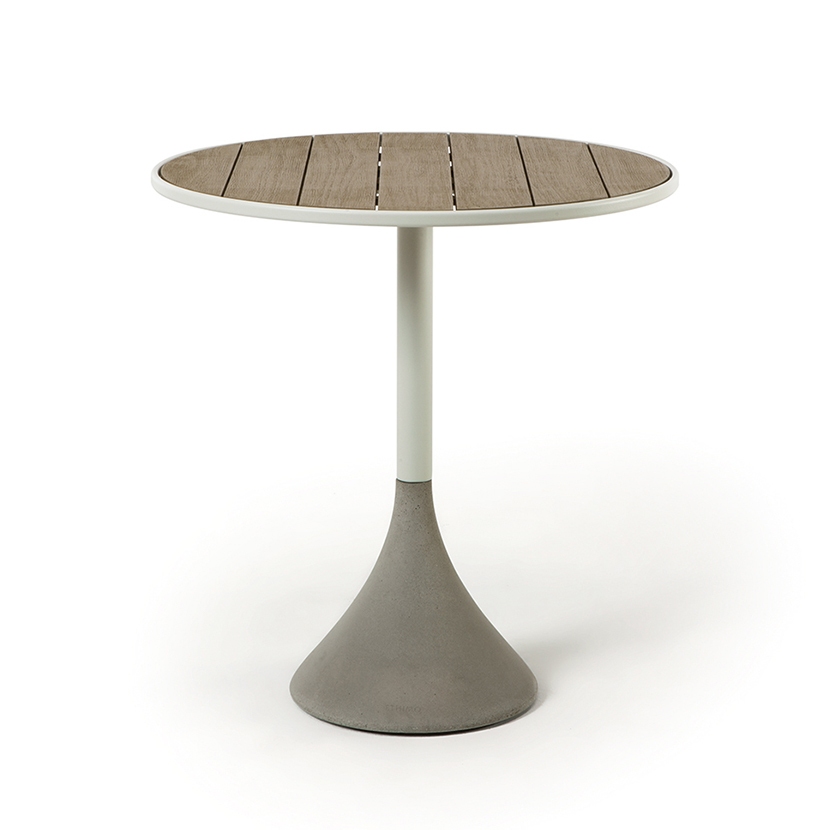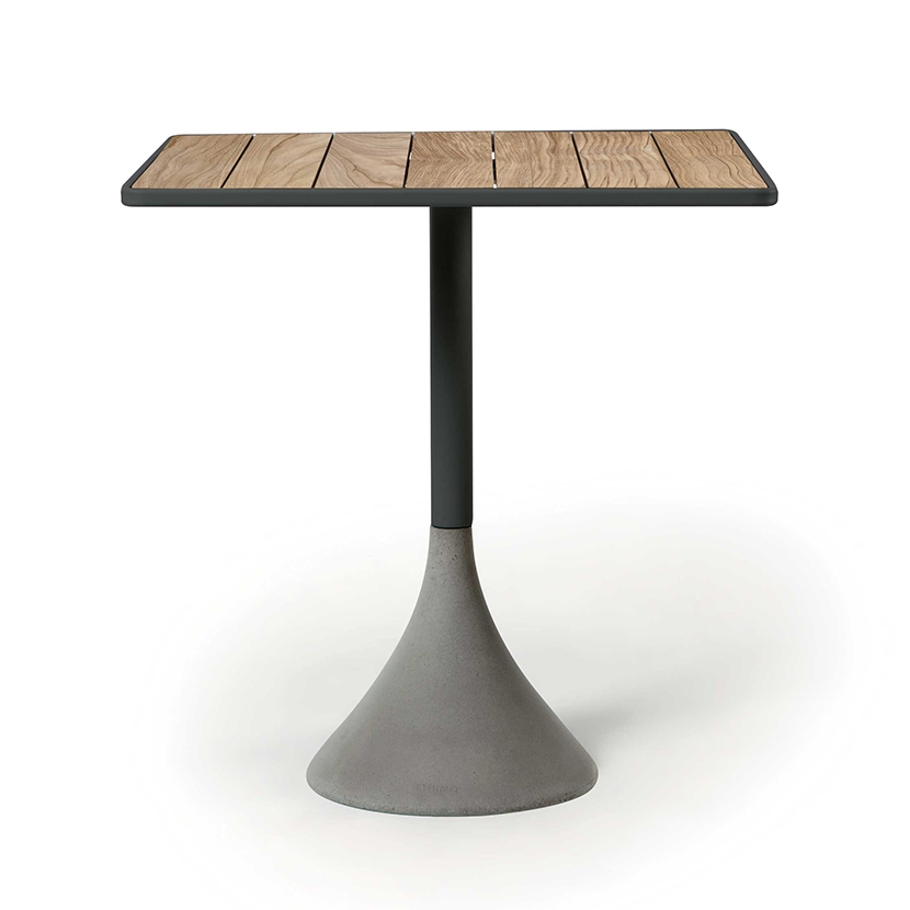 Concreto tables, with their solid cement base, have an aluminum structure and tops in either teak or a laminate finish, available in both round or square. Concreto tables offer across-the-board go-to solutions that are an ideal easy fit in a wide range of outdoor settings that include residential.