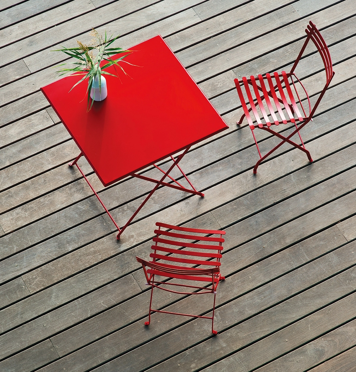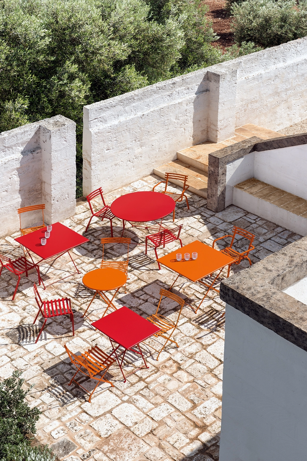 The Flower collection is a line of tables and chairs in which colored metal runs through the bright colors of nature.