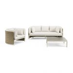 The union of aluminum and teak with synthetic fibre made using a special technology that recreates artisan sensations and has the warmth typical of natural woven fibre leads to refined, welcoming solutions that suggest relaxation and wellbeing.