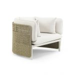 The collection Esedra takes its name from this element of classical architecture to create a complete range of furniture for a contemporary outdoor look, establishing a relationship between the various materials, such as the synthetic fiber used for the seat-backs, treated with a technology that recreates the sensation of natural woven fiber, the fabric upholstery of the cushions and the aluminium legs.