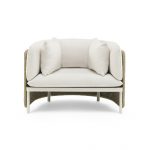 The collection Esedra takes its name from this element of classical architecture to create a complete range of furniture for a contemporary outdoor look, establishing a relationship between the various materials, such as the synthetic fiber used for the seat-backs, treated with a technology that recreates the sensation of natural woven fiber, the fabric upholstery of the cushions and the aluminium legs.