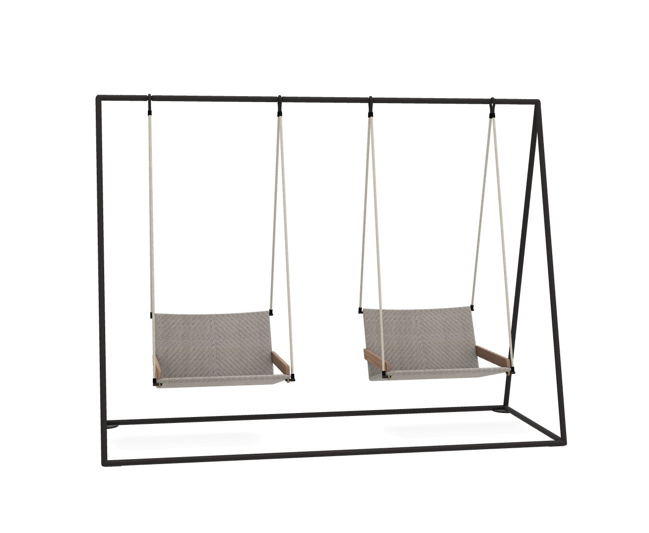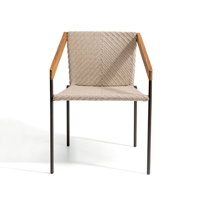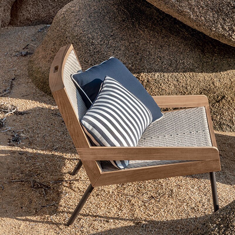 Allaperto Nautic styles the entire lounge, combining teak with polypropylene rope, a recyclable and 100% outdoor material.