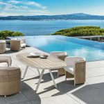 The union of aluminum and teak with synthetic fibre made using a special technology that recreates artisan sensations and has the warmth typical of natural woven fibre leads to refined, welcoming solutions that suggest relaxation and wellbeing.