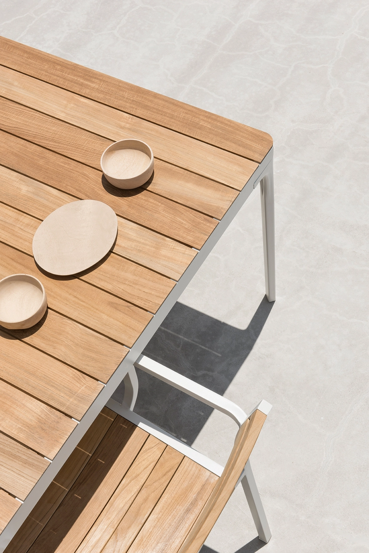 Play tables offer the chance to play with the sizes and varieties of materials that make up the top: painted aluminum, natural, porcelain tile with a stone effect or a special textured finish. Thought up for versatile mixing and matching with other products in the Ethimo collection, they are suitable for any need in the home or contract sector.