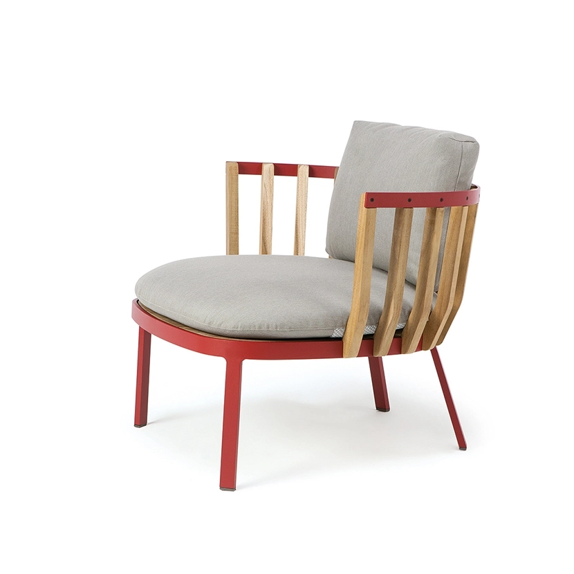The collaboration between Ethimo and Patrick Norguet has given rise to Swing, a collection of lounge and dining furniture with a dual structure: one an external metal layer, the other an internal layer made with slats of teak, the combination of which creates a balanced alternation of lines and materials.