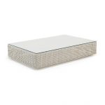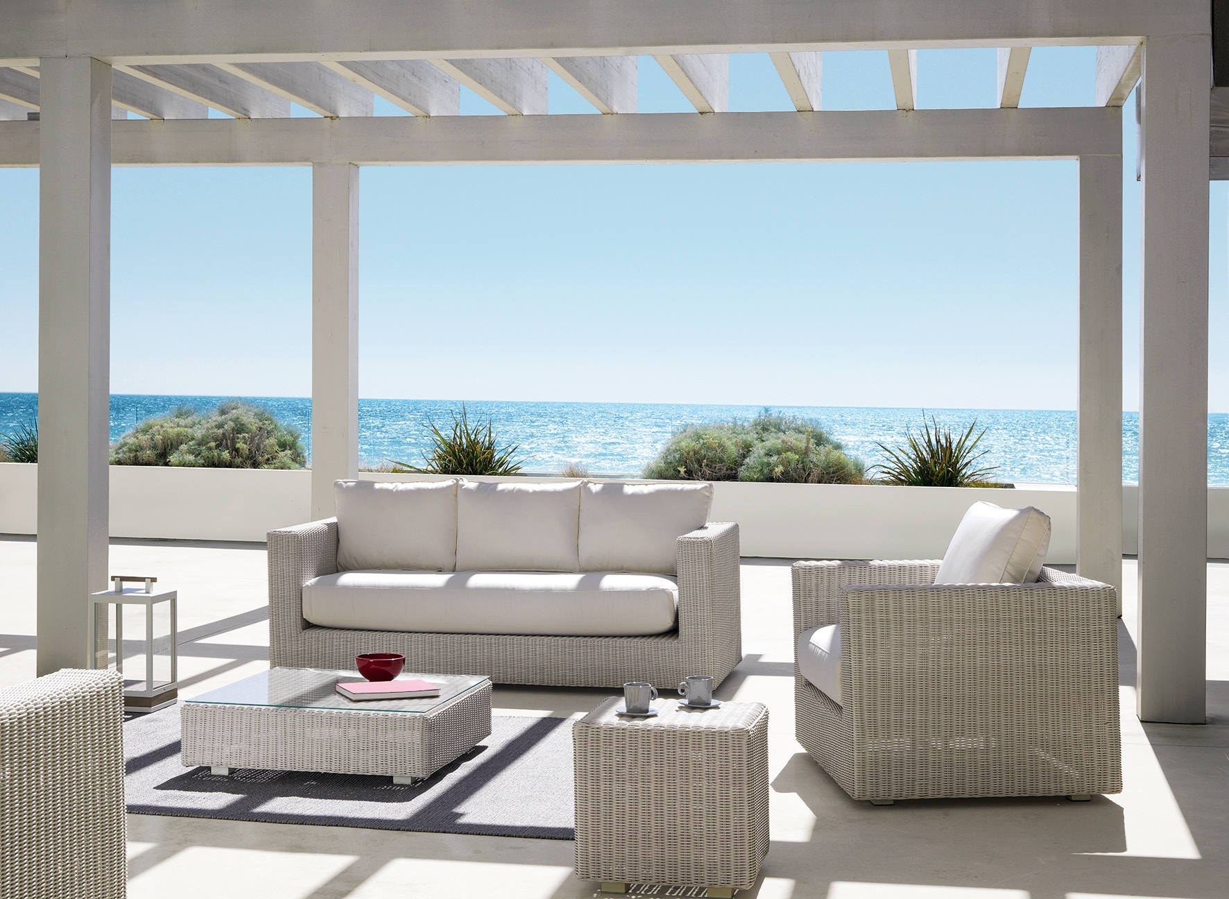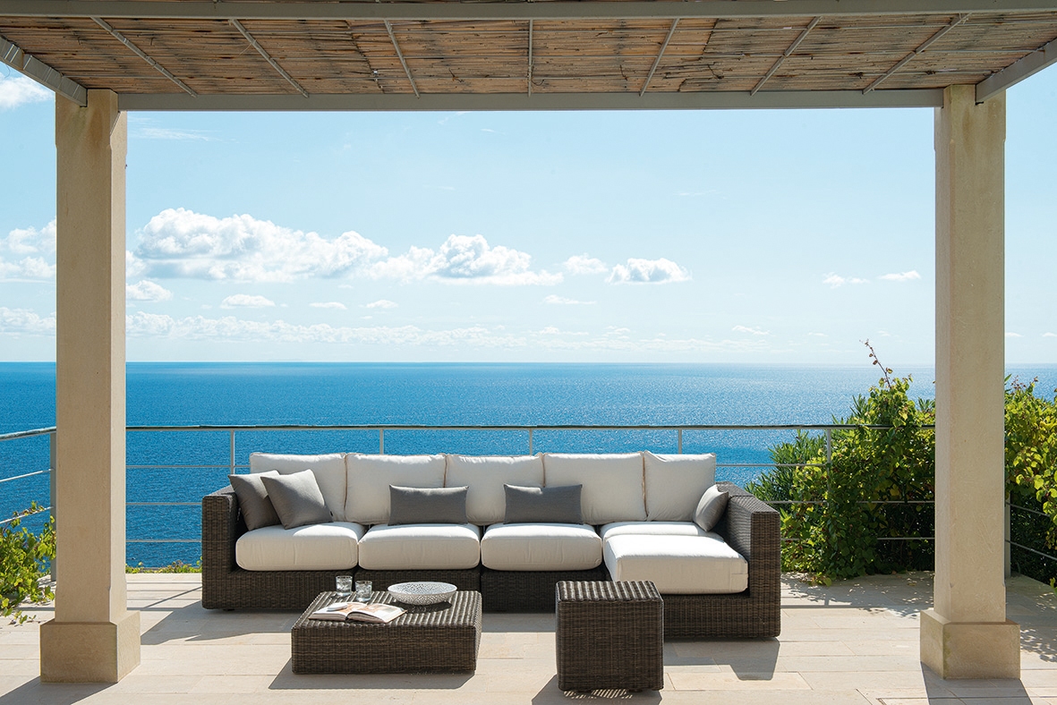 The textural nature of the all-weather fiber, hand woven to create pure geometries of volumes, is the main feature of the Cube collection: a complete range for creating infinite compositions based on a concept of modularity. -