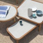 - Available in Natural Teak Frame with Ice White Ceramic Top, or Pickled Teak Frame with Sand Ceramic Top.