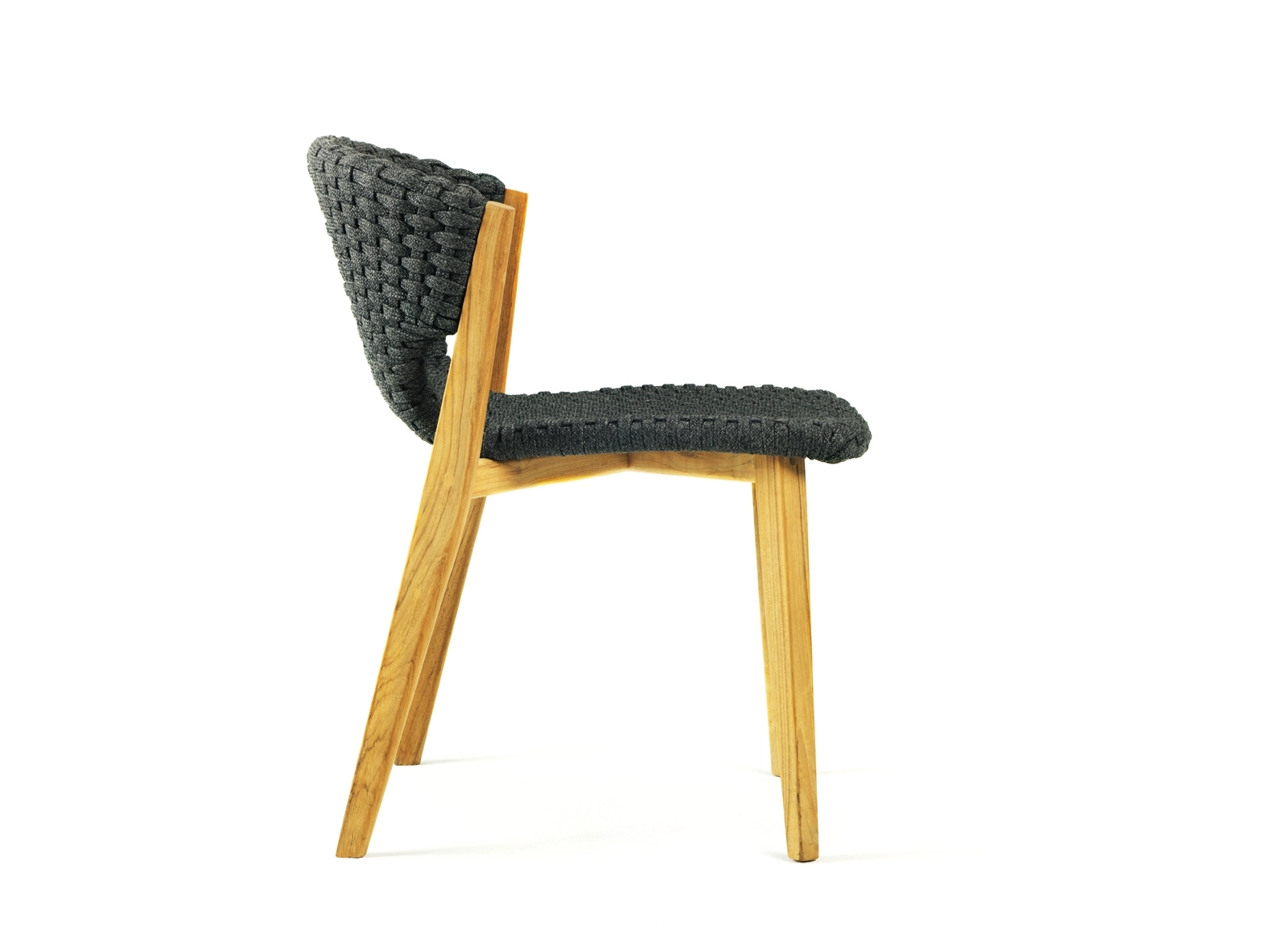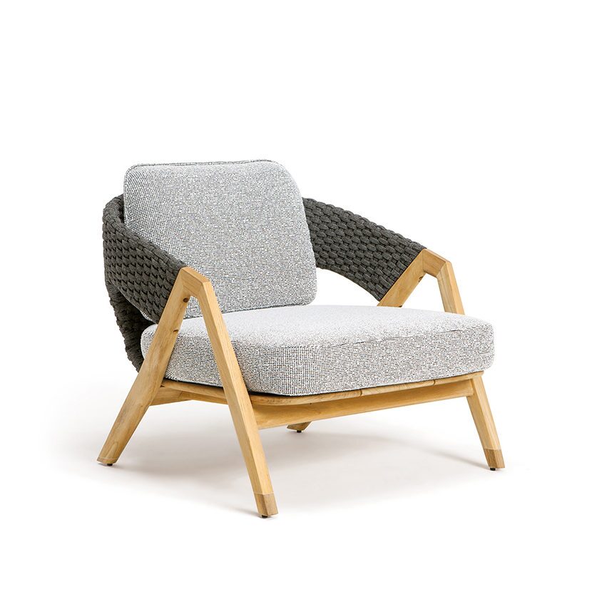Knit is a complete line of tables, chairs and lounge chairs in teak and woven rope that expresses with refinement a perfect synthesis of aesthetics, functionality and ergonomics. This iconic collection is offering a new and special interpretation of the classic bergère.