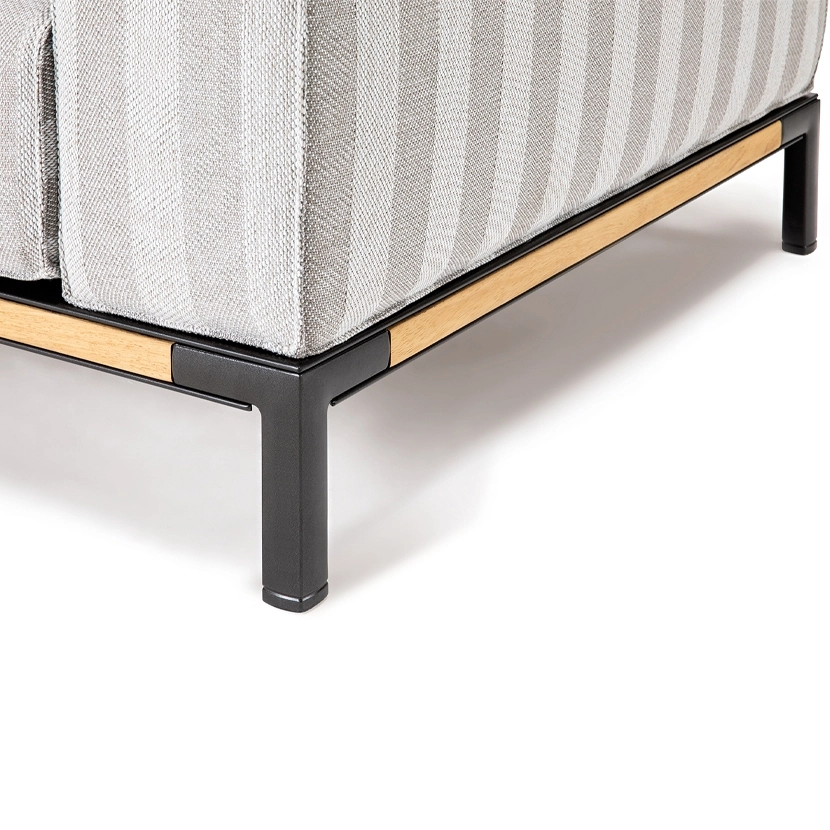 - Frame shown in Powder Coated Aluminum with Textured Matte Carbon finish and Natural Teak details.