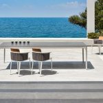 Play tables offer the chance to play with the sizes and varieties of materials that make up the top: painted aluminum, natural, porcelain tile with a stone effect or a special textured finish. Thought up for versatile mixing and matching with other products in the Ethimo collection, they are suitable for any need in the home or contract sector.