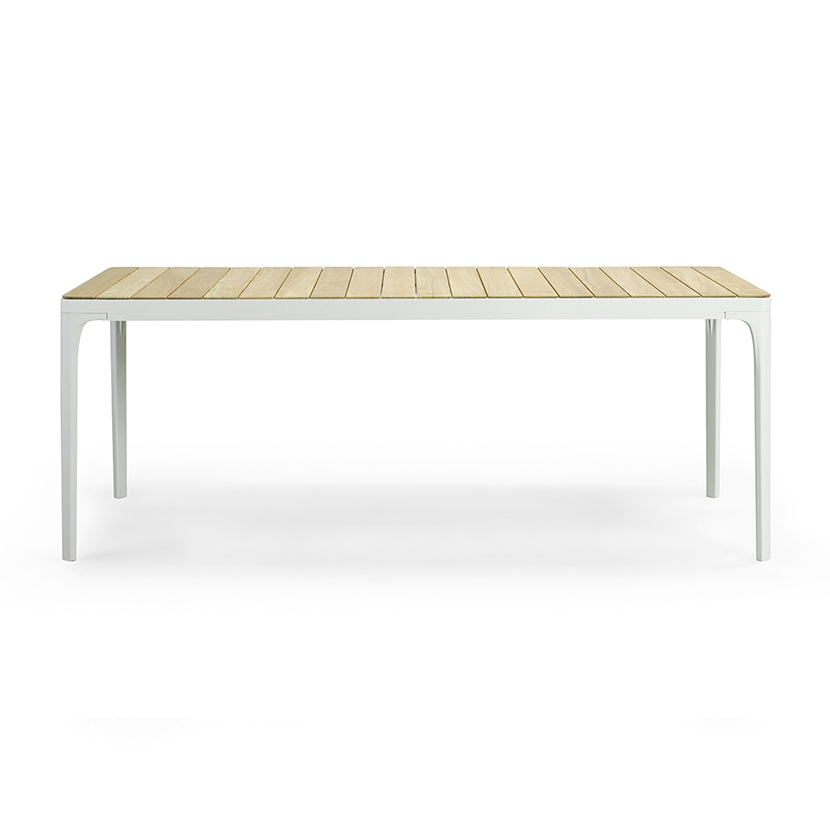 - Top is available in Powder Coated Aluminum, Warmwhite or Warmgrey; Slatted Natural Teak; or Ceramic Stone in Ice White or Graphite colors.