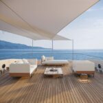 The leitmotiv for the entire collection is a single mood enhanced by the selection of materials and finishes from the world of yachting and a range of fabrics that harks back to the true heritage of all things nautical, reworked in a contemporary key. Furthermore, the versatile modularity of the lounge and sundeck elements enables the creation of custom settings to meet any user need. Costiera and Baia together number more than twenty pieces that, mixed and matched together, can be used to furnish spaces of different types, sizes and shapes.