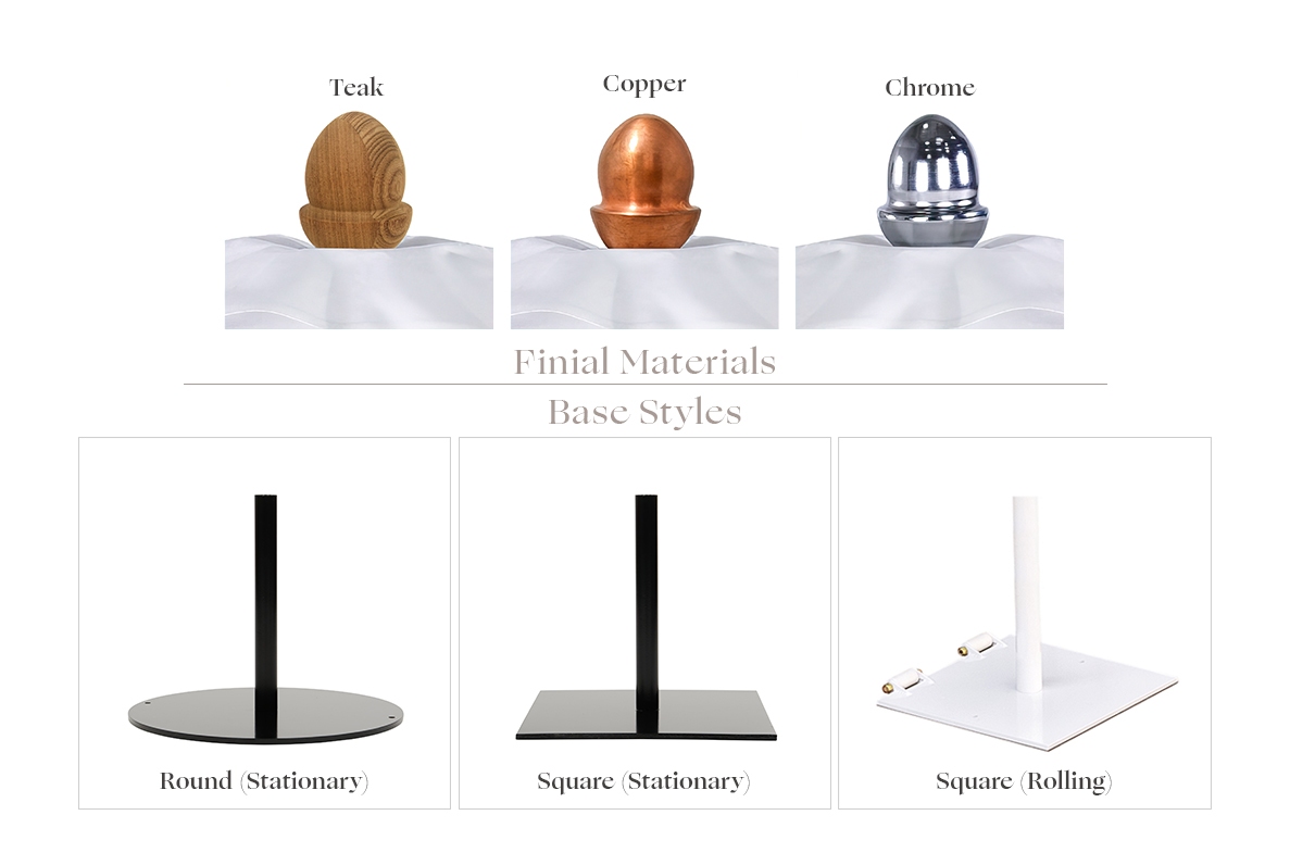 - Finial options in Copper, Chrome, or Teak.