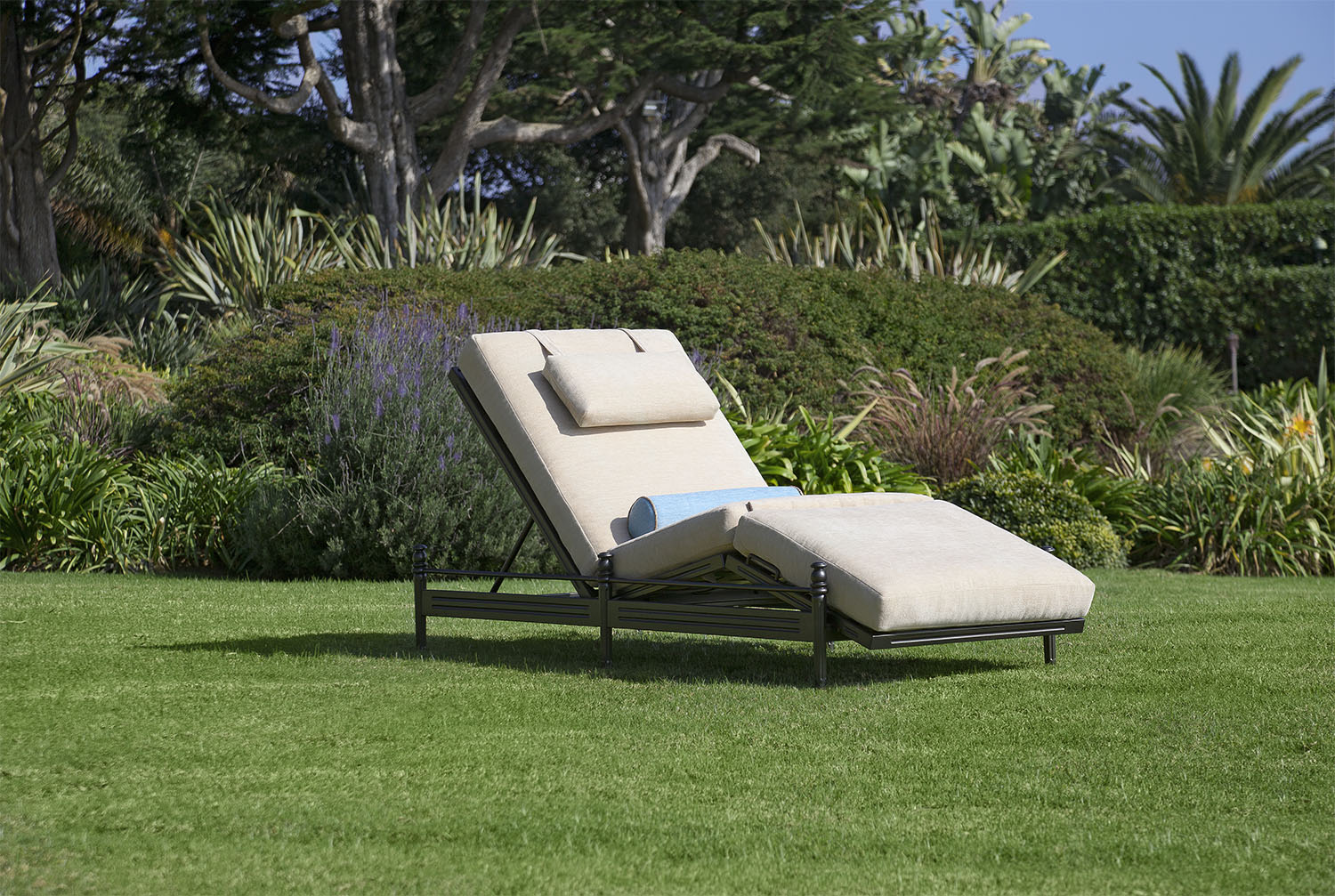 Enjoy the ultimate in relaxation. The Castillo Chaise Lounge offers deep-cushioned comfort with a wide variety of positions and spacious proportions. The added convenience of two inset rear wheels also insures easy mobility. -