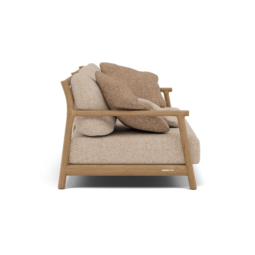 Surrounded by a sense of purity in the use of natural materials, Muyu offers a lounge collection as well as light and airy dining chairs. Soft, rounded joints ensure the elegant teak silhouettes blend together seamlessly into a single organic structure. Complemented by large, fluffy cushions, Muyu extends an open invitation for convivial outdoor moments – from sunrise to sunset.