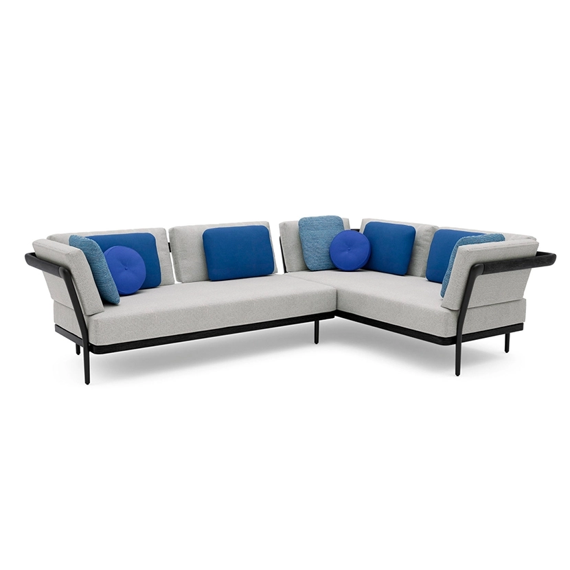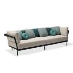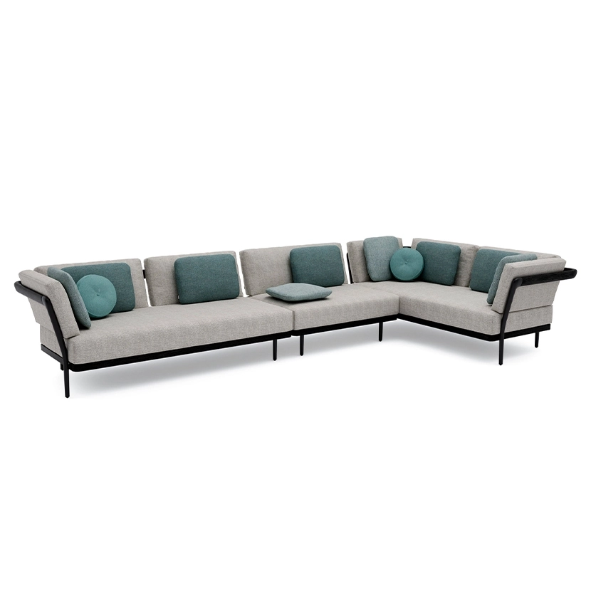 Flex unites a world of contrasts: limber yet strong, this collection features a light, elegant aluminum frame combined with the warmth of a handcrafted wood finish. Flex carefully balances old and new to give the pieces their defining characteristics. The unique shape of the oval legs turns the Flex sofa into a one-of-a-kind piece of furniture destined for long-lasting appreciation.