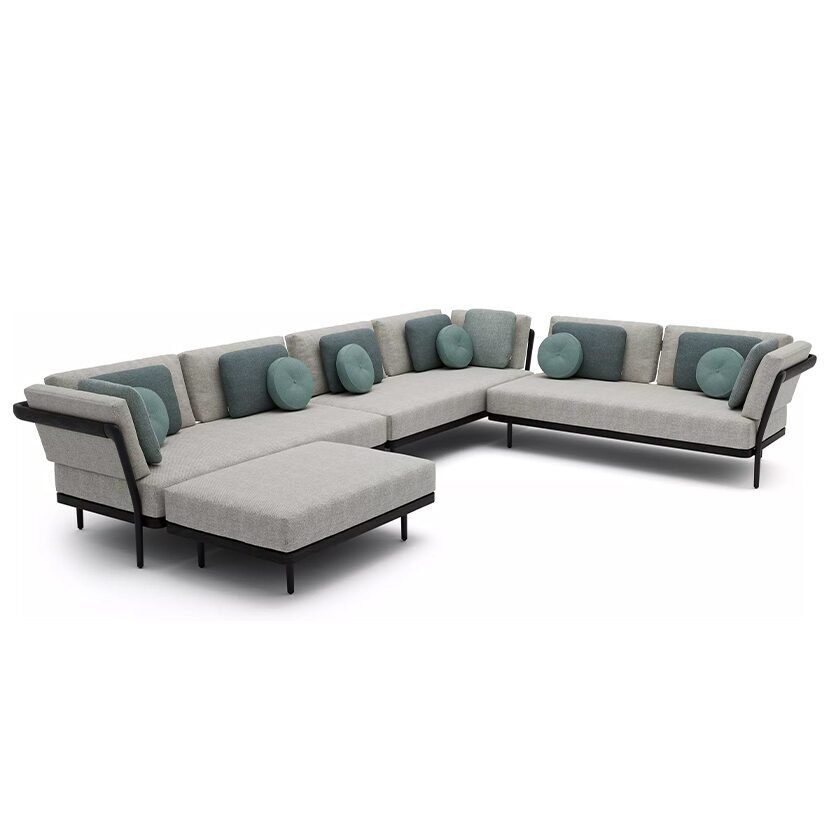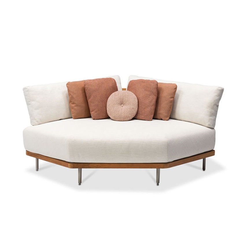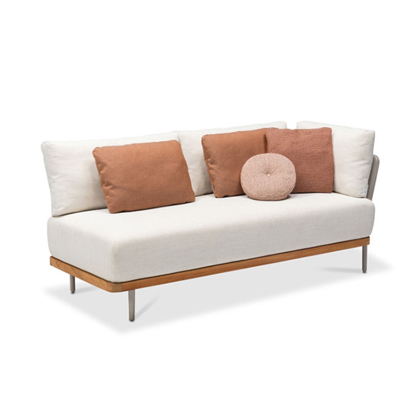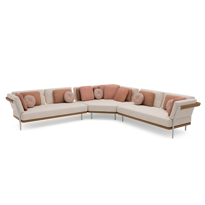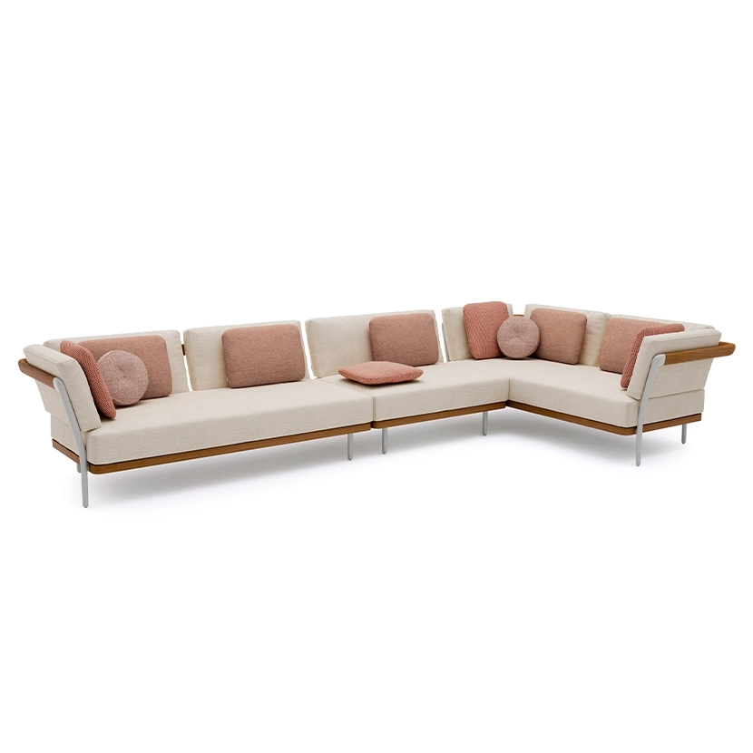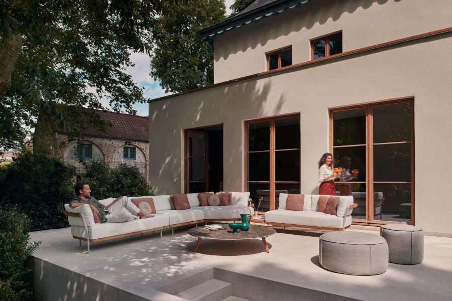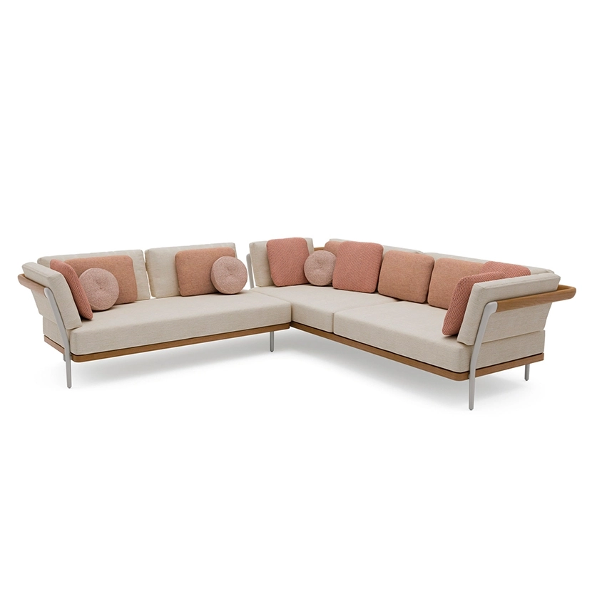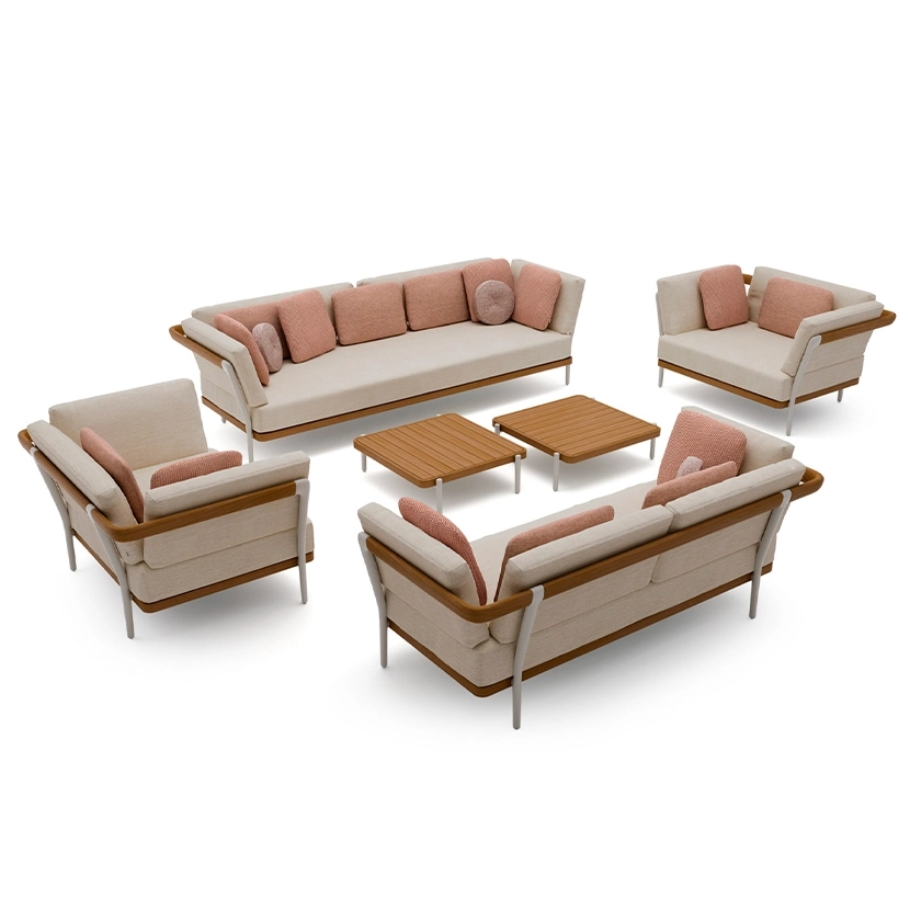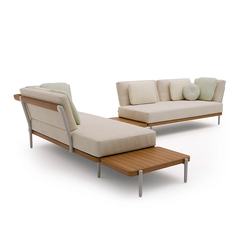Flows unites a world of contrasts: limber yet strong, this collection features a light, elegant aluminum frame combined with the warmth of a handcrafted wood finish. Flows carefully balances old and new to give the pieces their defining characteristics. The unique shape of the oval legs turns the Flows sofas and loungers into one-of-a-kind pieces destined for long-lasting appreciation.