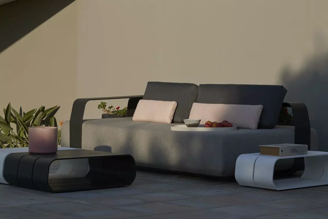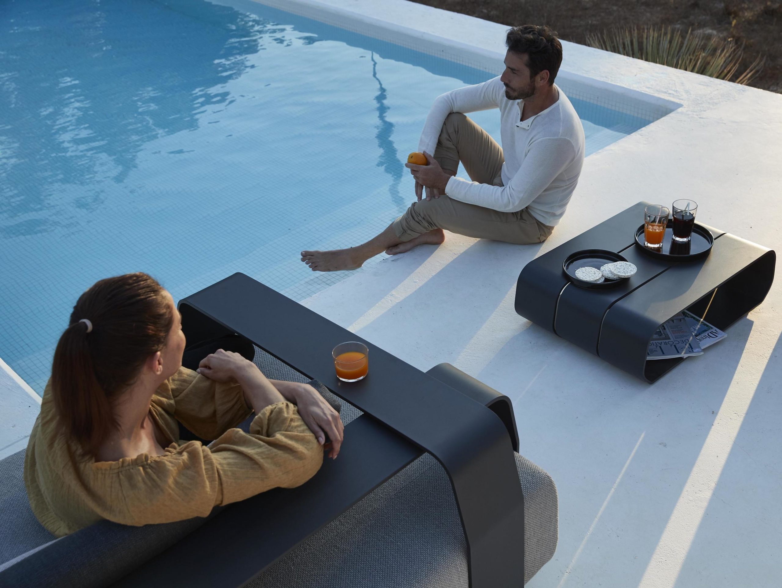 With its unique oval frame, the Vitral side table is a real eye-catcher. Its atypical shape hints at sixties retro yet gives your outdoor area a modern-day appeal. Need more space? Thanks to the two-level structure, you can place your drinks on top and stack your books below. Available in two sizes, Vitral is perfect for large or smaller spaces.