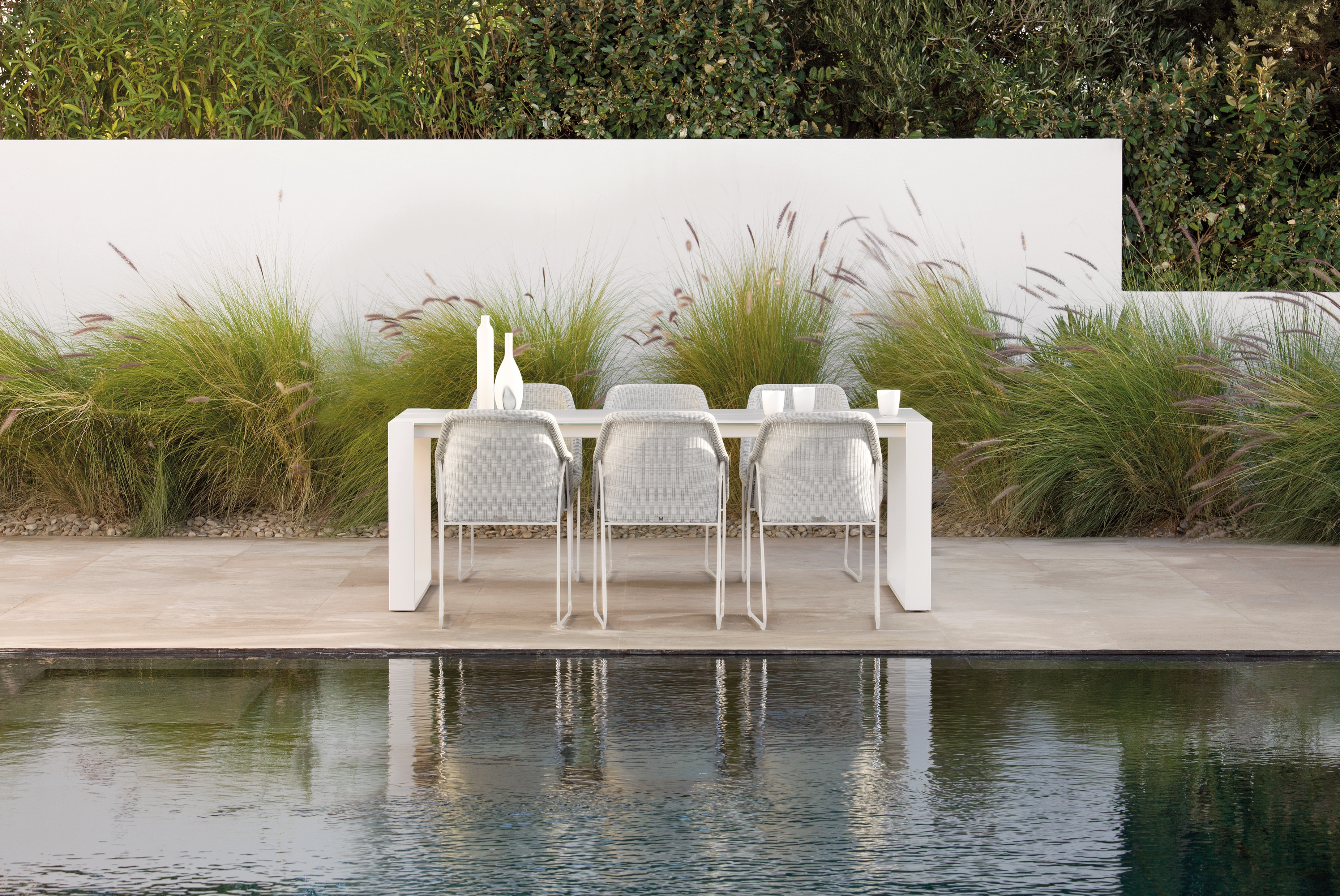 Mood is a lightweight and durable collection of resin wicker furniture. Designed with translucence in mind, the chairs are available as high or low units. This collection also includes side tables in different sizes and finishes.