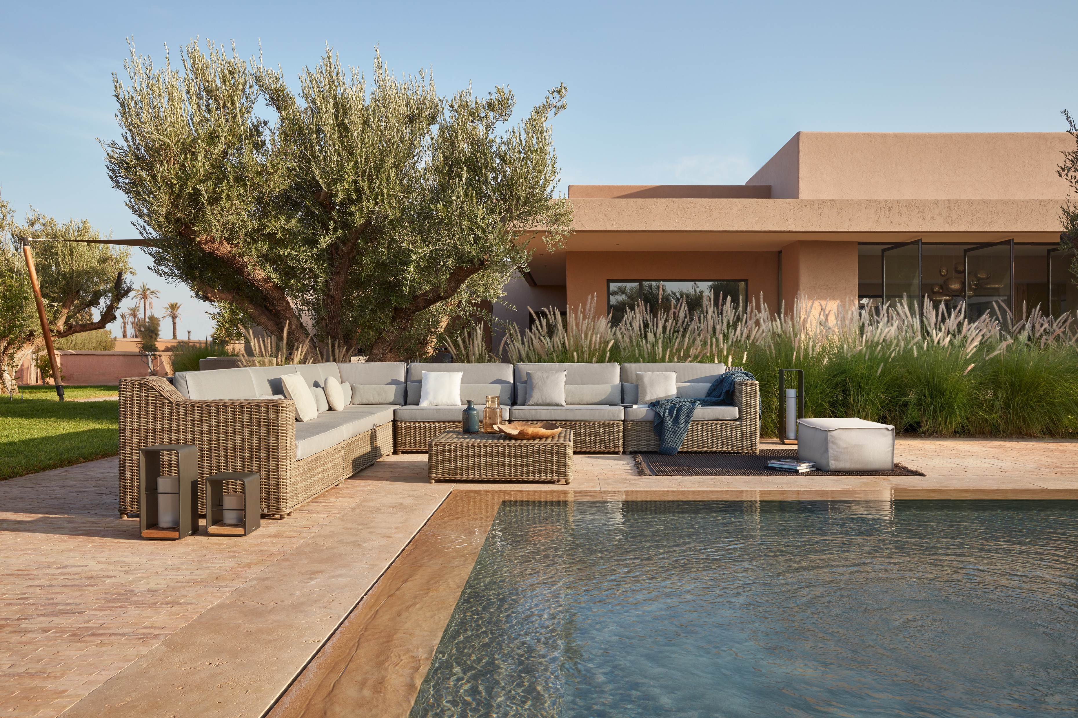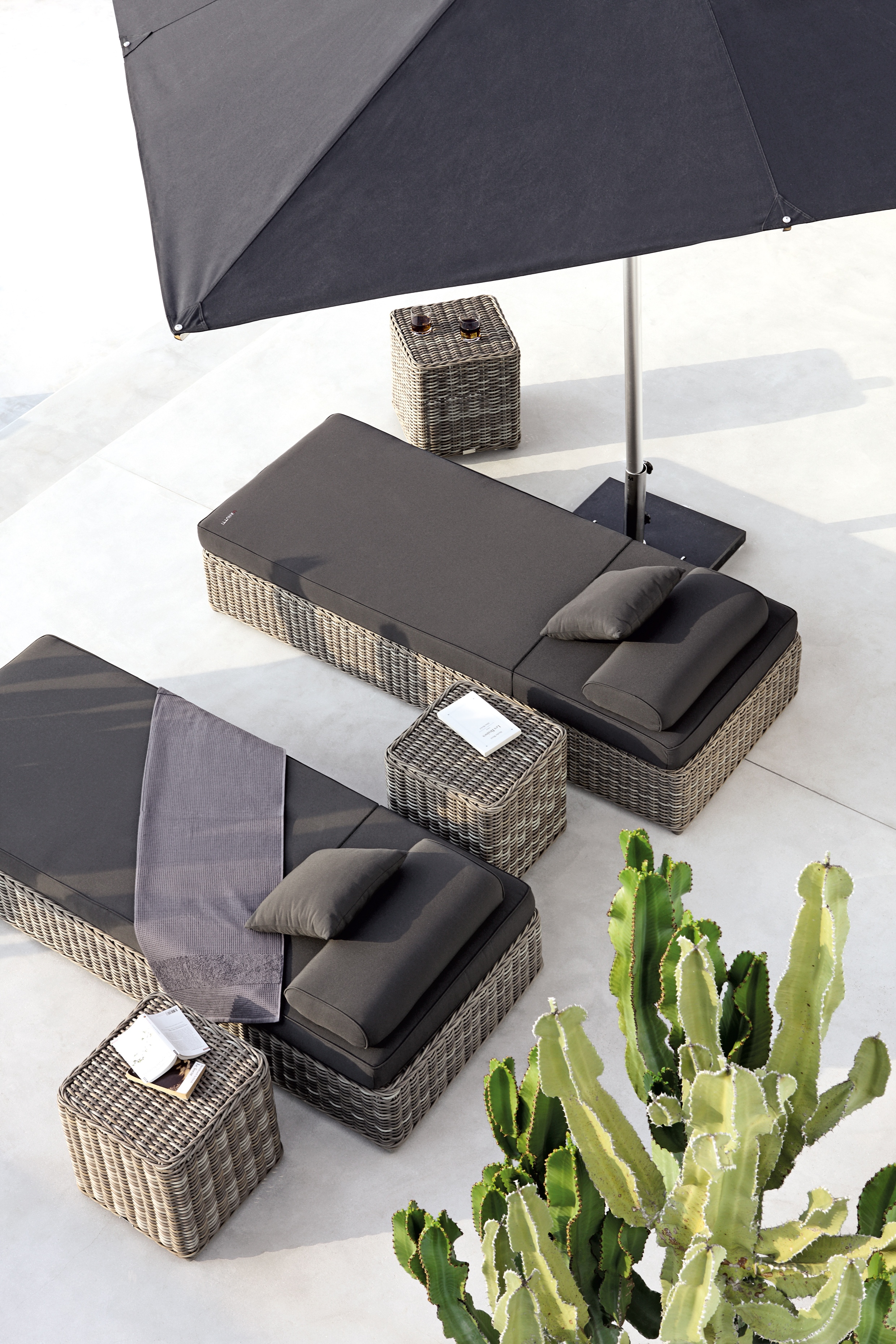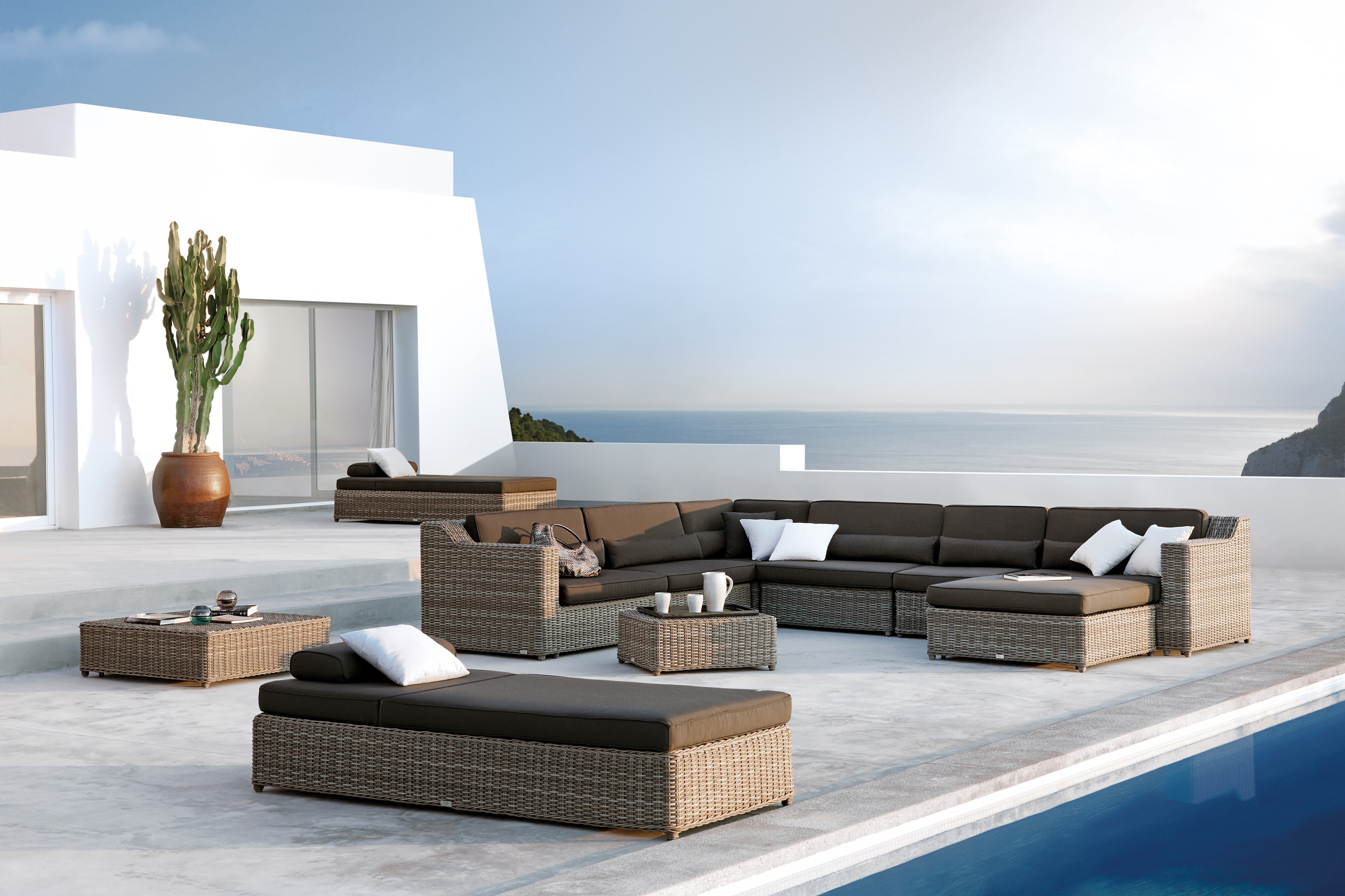 The San Diego collection of tables, chairs, sofas and accessories combines strong water-repellent fabrics and synthetic aged rattan cane work. Designed with a stark, minimalistic eye to detail, each piece also includes the softer, organic appeal of wicker. Natural materials and tones add to the collection’s ageless appeal.