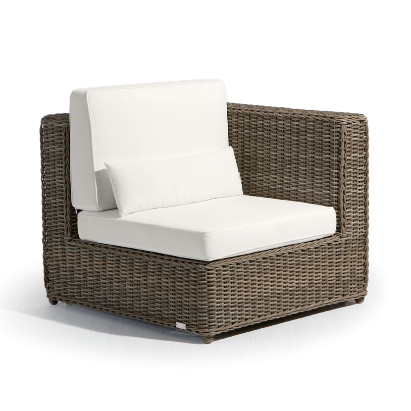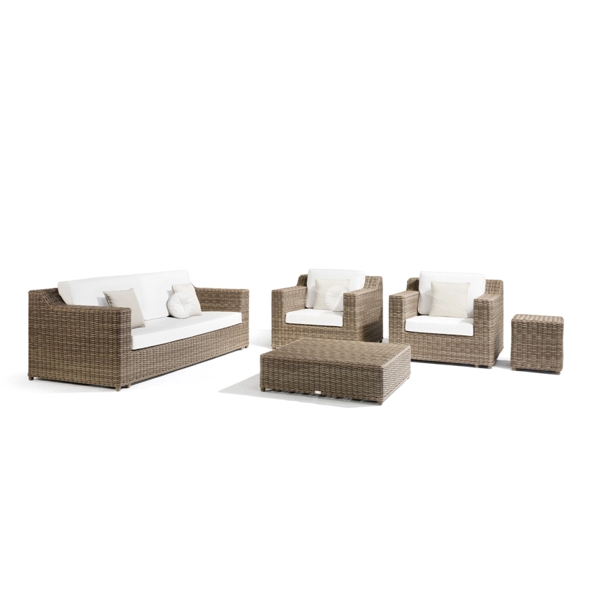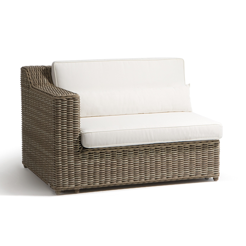 The San Diego collection of tables, chairs, sofas and accessories combines strong water-repellent fabrics and synthetic aged rattan cane work. Designed with a stark, minimalistic eye to detail, each piece also includes the softer, organic appeal of wicker. Natural materials and tones add to the collection’s ageless appeal.
